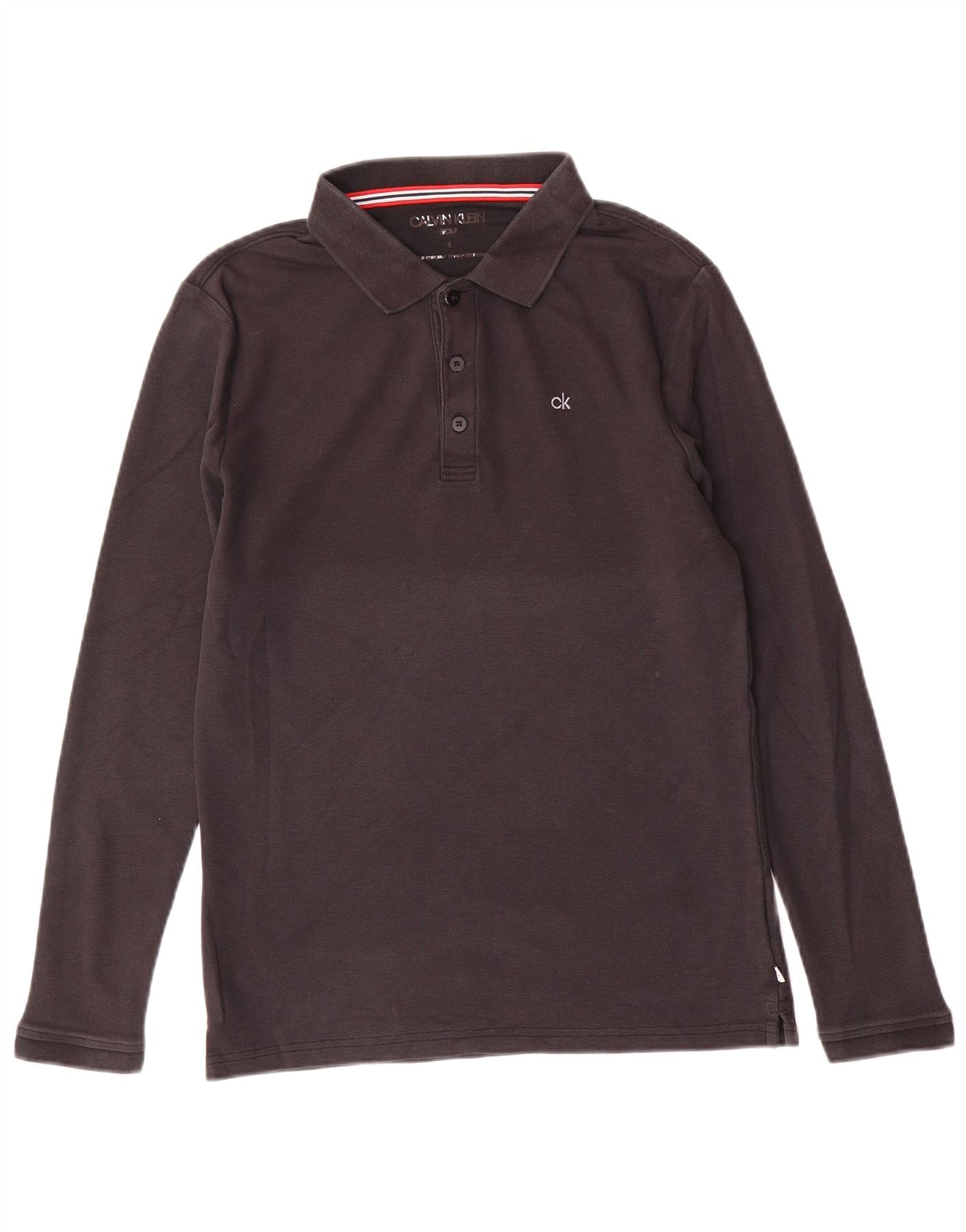 CALVIN KLEIN Camisa polo masculina de manga comprida pequena de algodão preto