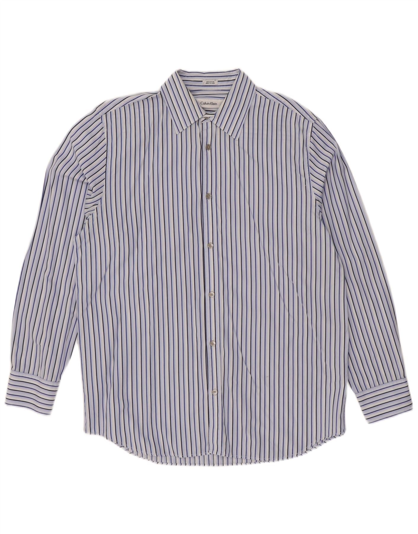Camisa masculina CALVIN KLEIN de algodão listrado azul médio
