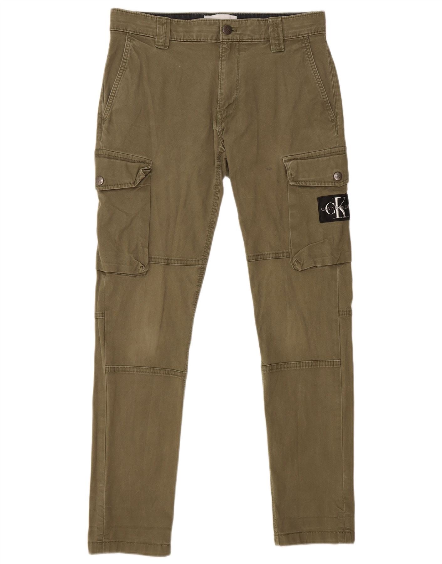 CALVIN KLEIN Calça cargo masculina slim W29 L29 algodão cáqui