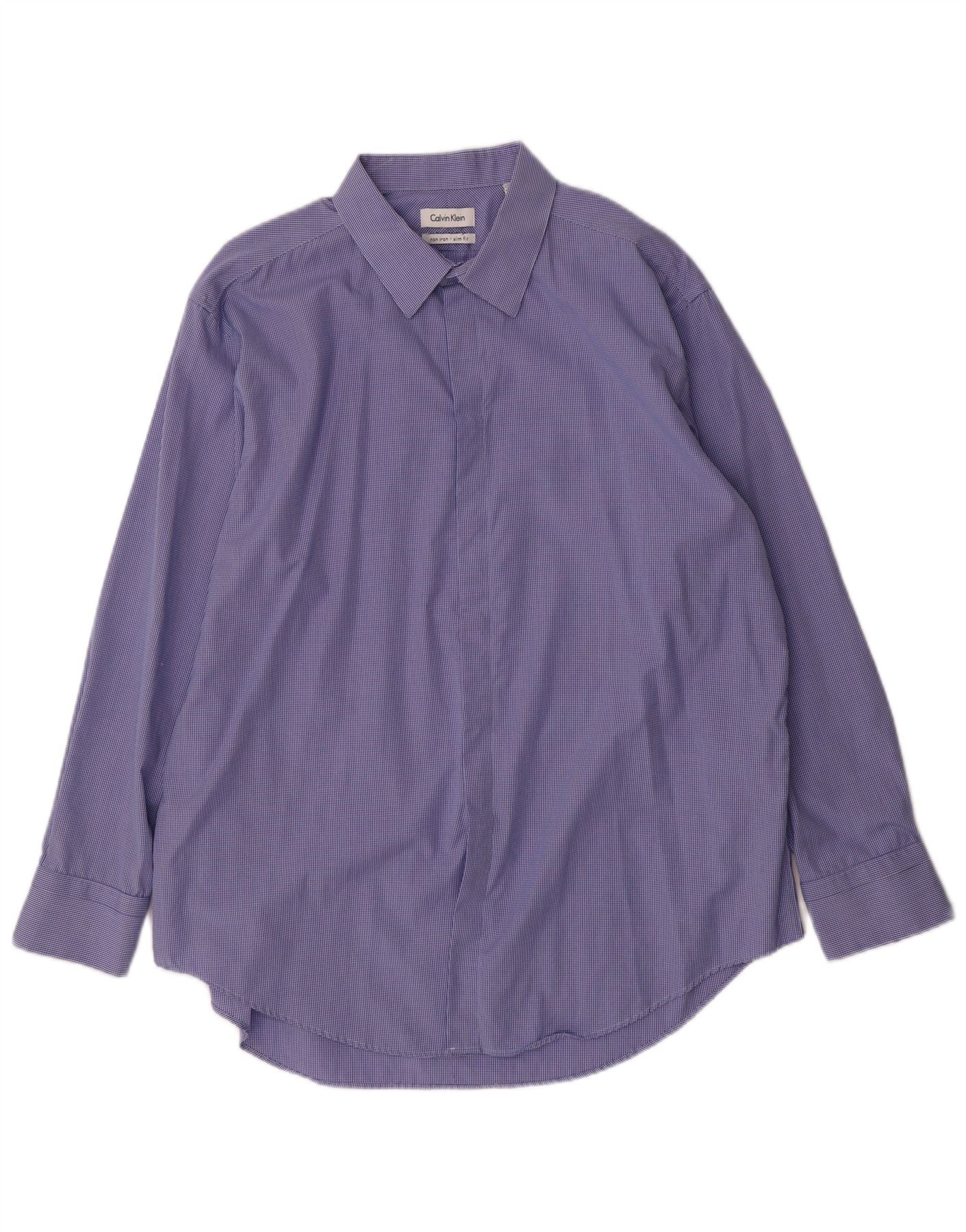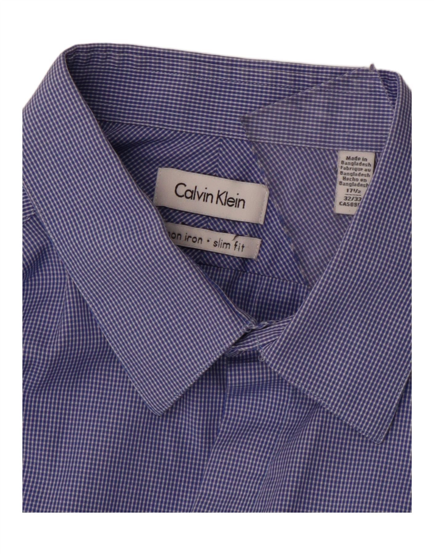 Camisa masculina CALVIN KLEIN Slim Fit tamanho 17 1/2 XL algodão xadrez azul