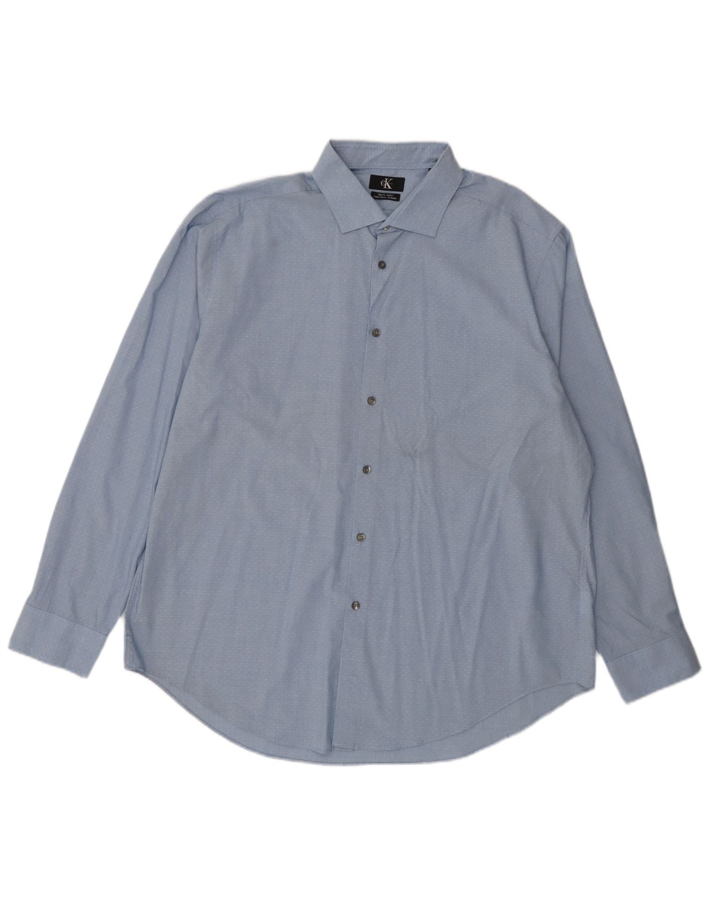 Camisa masculina CALVIN KLEIN Slim Fit tamanho 18 2XL algodão manchado azul