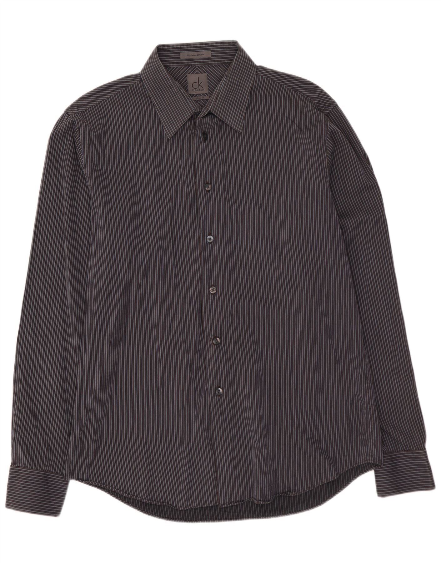 Camisa masculina CALVIN KLEIN Slim Fit tamanho 41 16 grande algodão listrado cinza