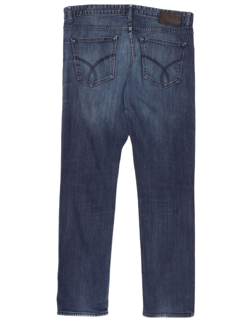 - AI Description: These Calvin Klein womens slim jeans are crafted from blue stretch denim. They feature a mid rise waist and a zip fly closure. The slim fit design tapers neatly through the leg. Classic five pocket styling adds practicality. A subtle logo detail completes the look. This pair offers both comfort and a sleek, modern silhouette.