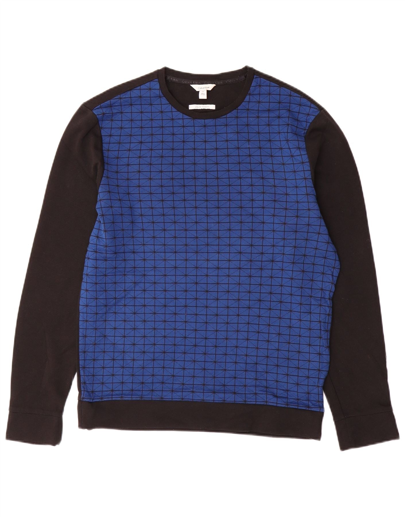 CALVIN KLEIN Moletom masculino Jumper XS Azul Geométrico Algodão