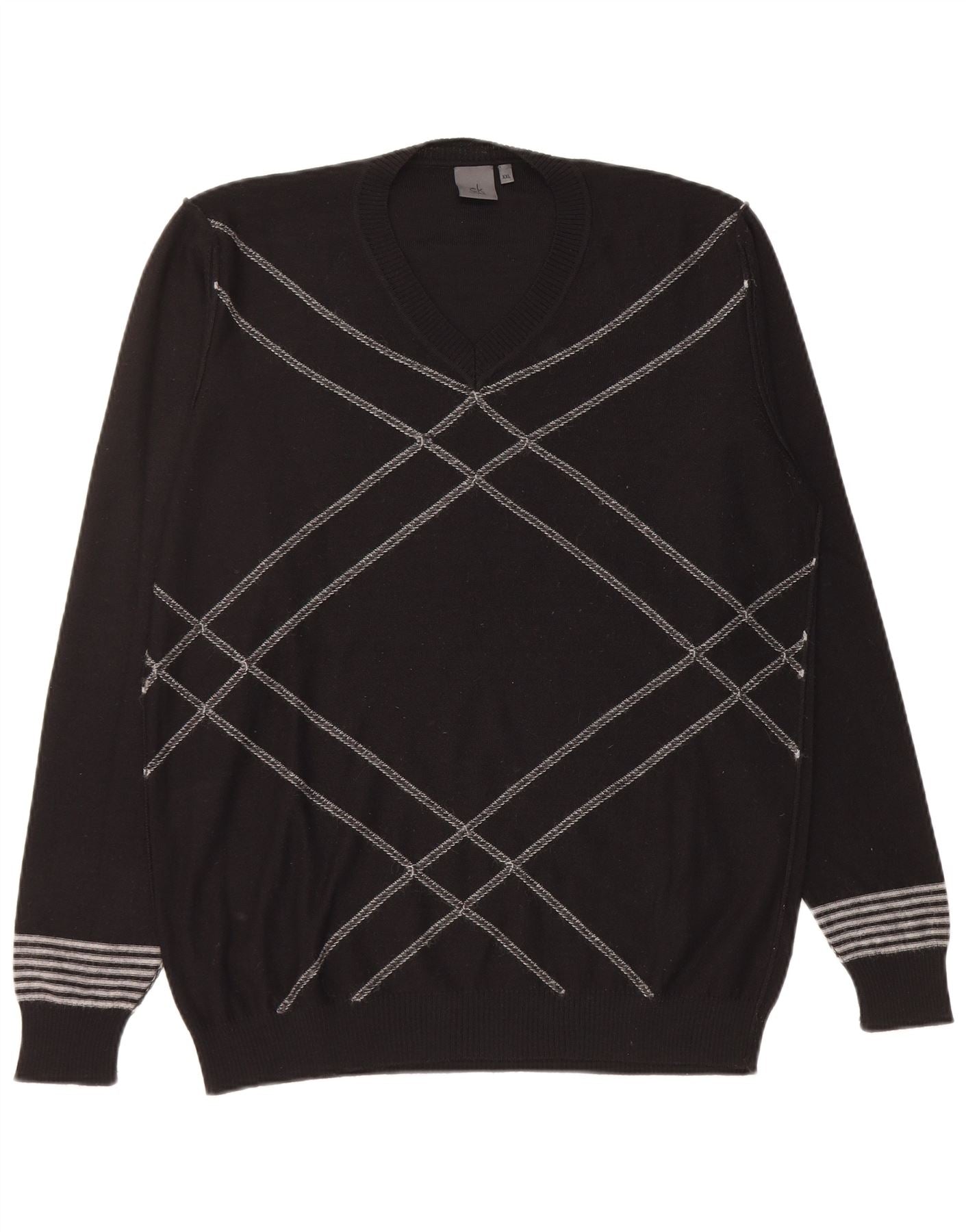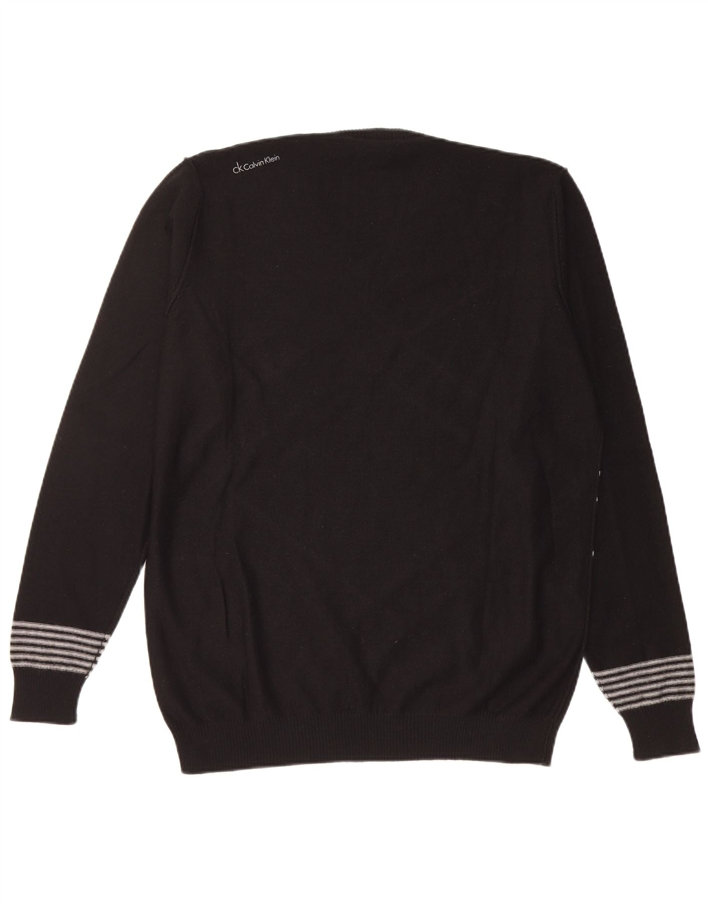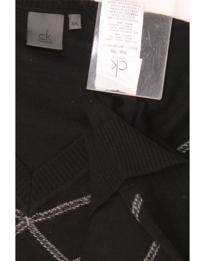 CALVIN KLEIN Mens V-Neck Jumper Sweater 2XL Black Geometric Wool