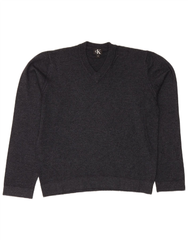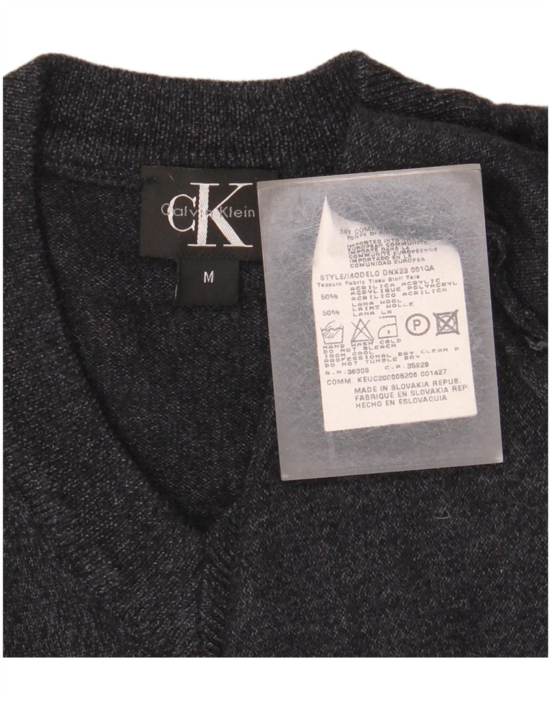 Suéter masculino CALVIN KLEIN com decote em V, acrílico manchado cinza médio
