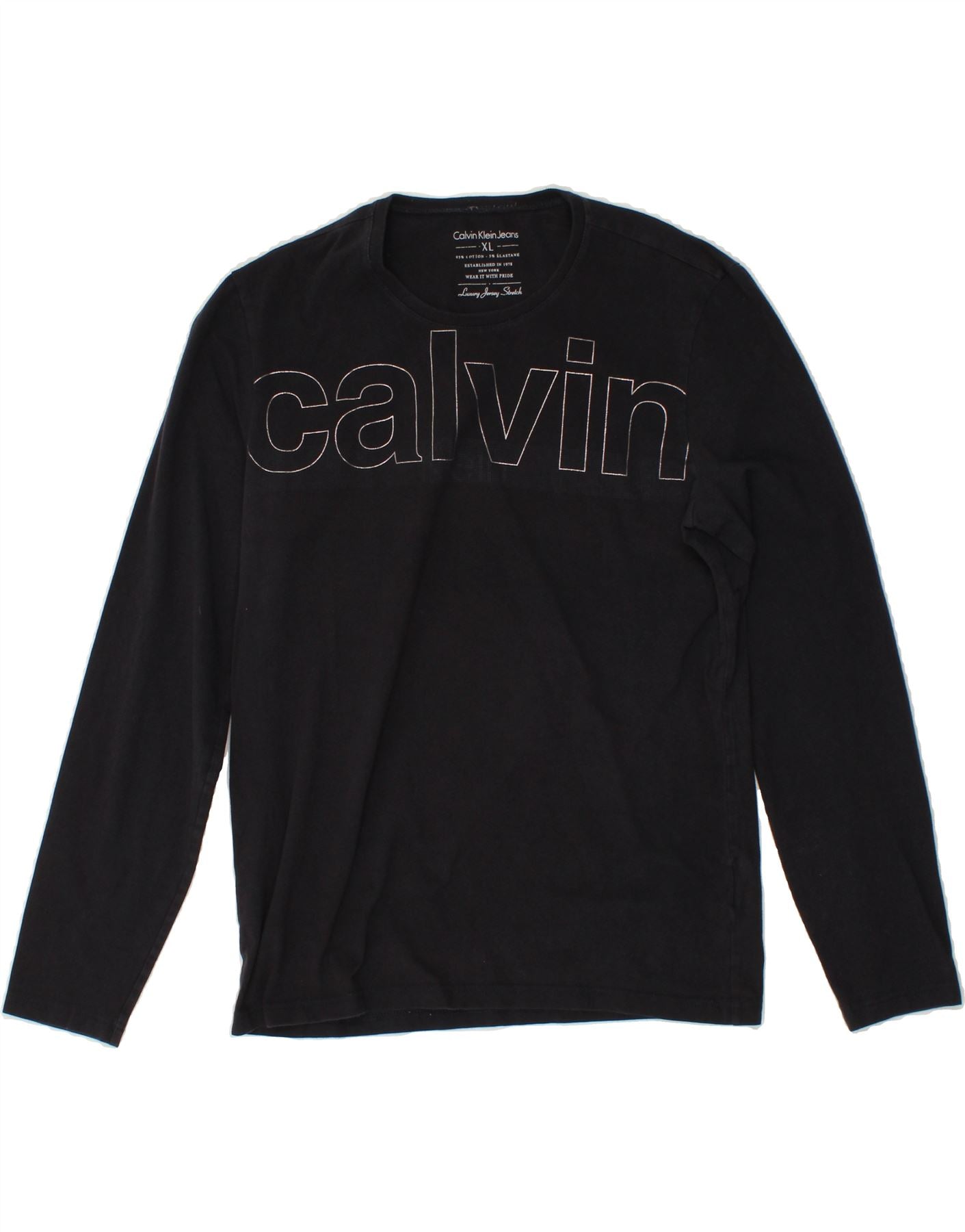 CALVIN KLEIN Top gráfico feminino manga comprida UK 18 XL algodão azul marinho