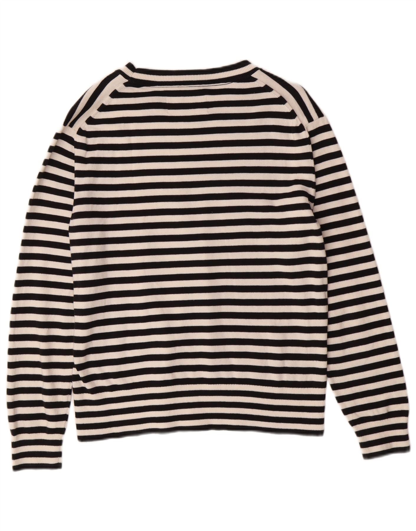 - Descrição da IA: Este suéter feminino Calvin Klein Jeans apresenta um padrão listrado clássico em um corte regular. O tecido de malha oferece uma sensação confortável. Possui gola redonda e mangas compridas, sendo uma peça versátil. O fecho do pulôver garante facilidade de uso. Um logotipo sutil adiciona um toque exclusivo a este estilo clássico.