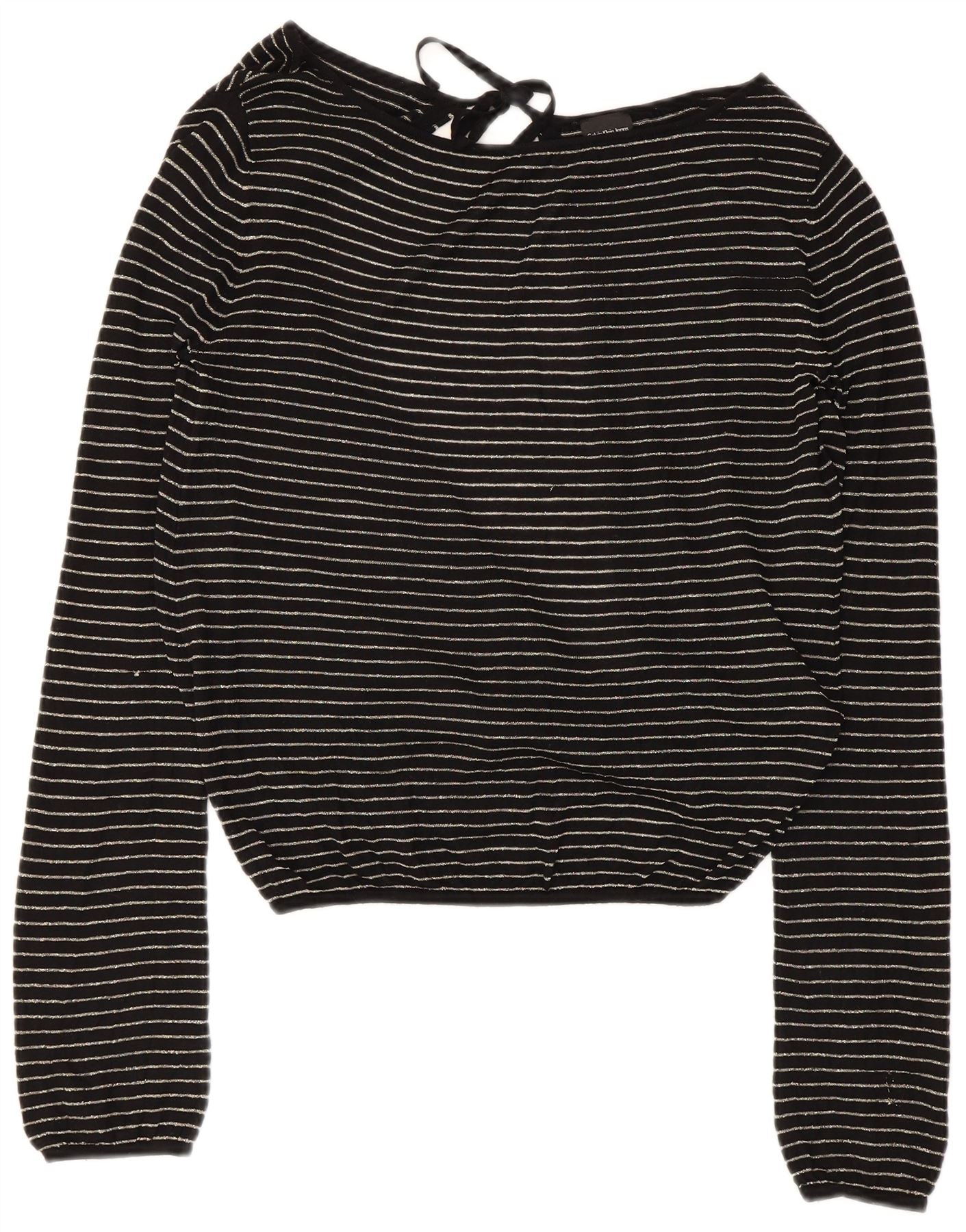Blusa feminina Calvin Klein crop top UK 14 grande preto listrado viscose
