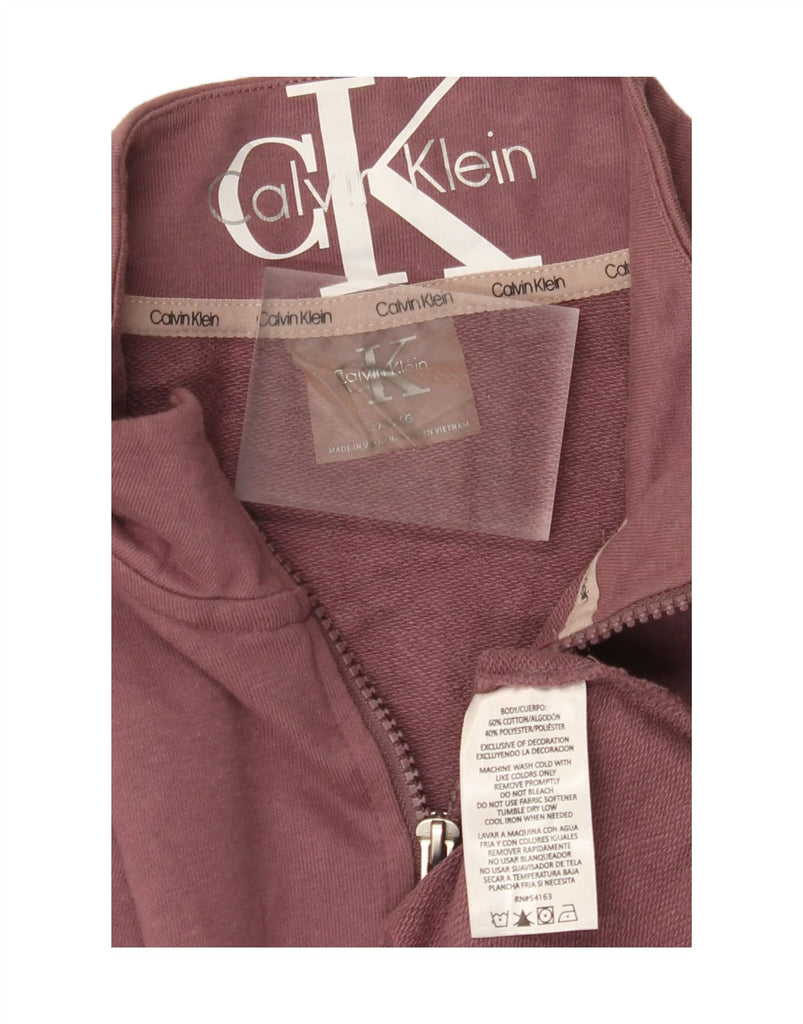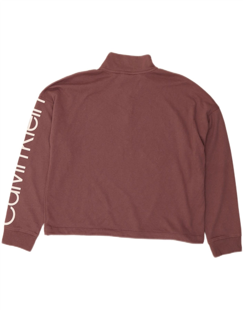 CALVIN KLEIN Womens Crop Graphic Zip Neck Sweatshirt Jumper UK 18 XL Brown