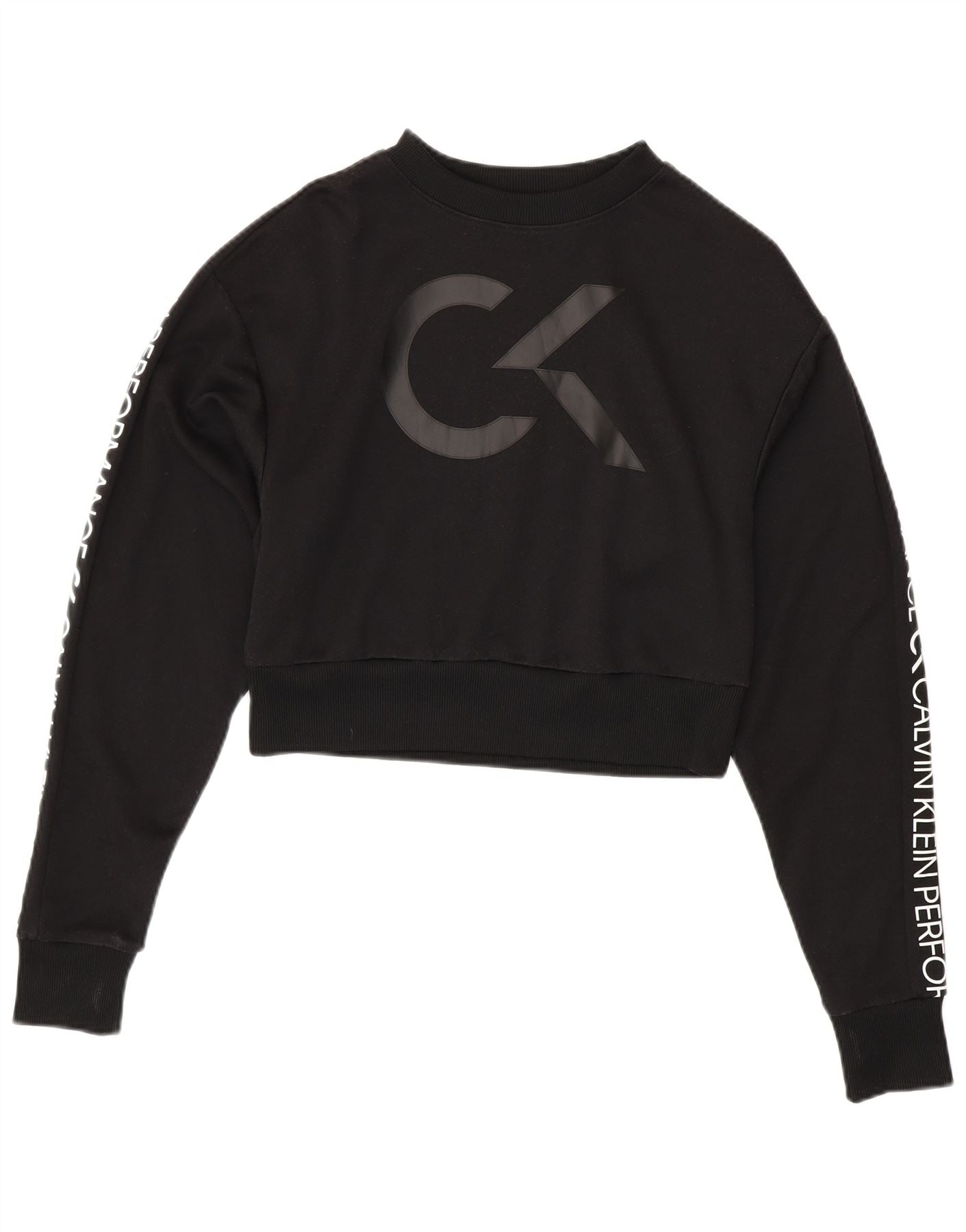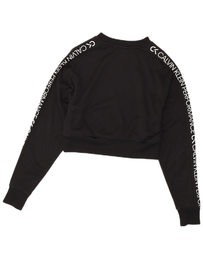 CALVIN KLEIN Womens Crop Loose Fit Sweatshirt Jumper UK 10 Small Black