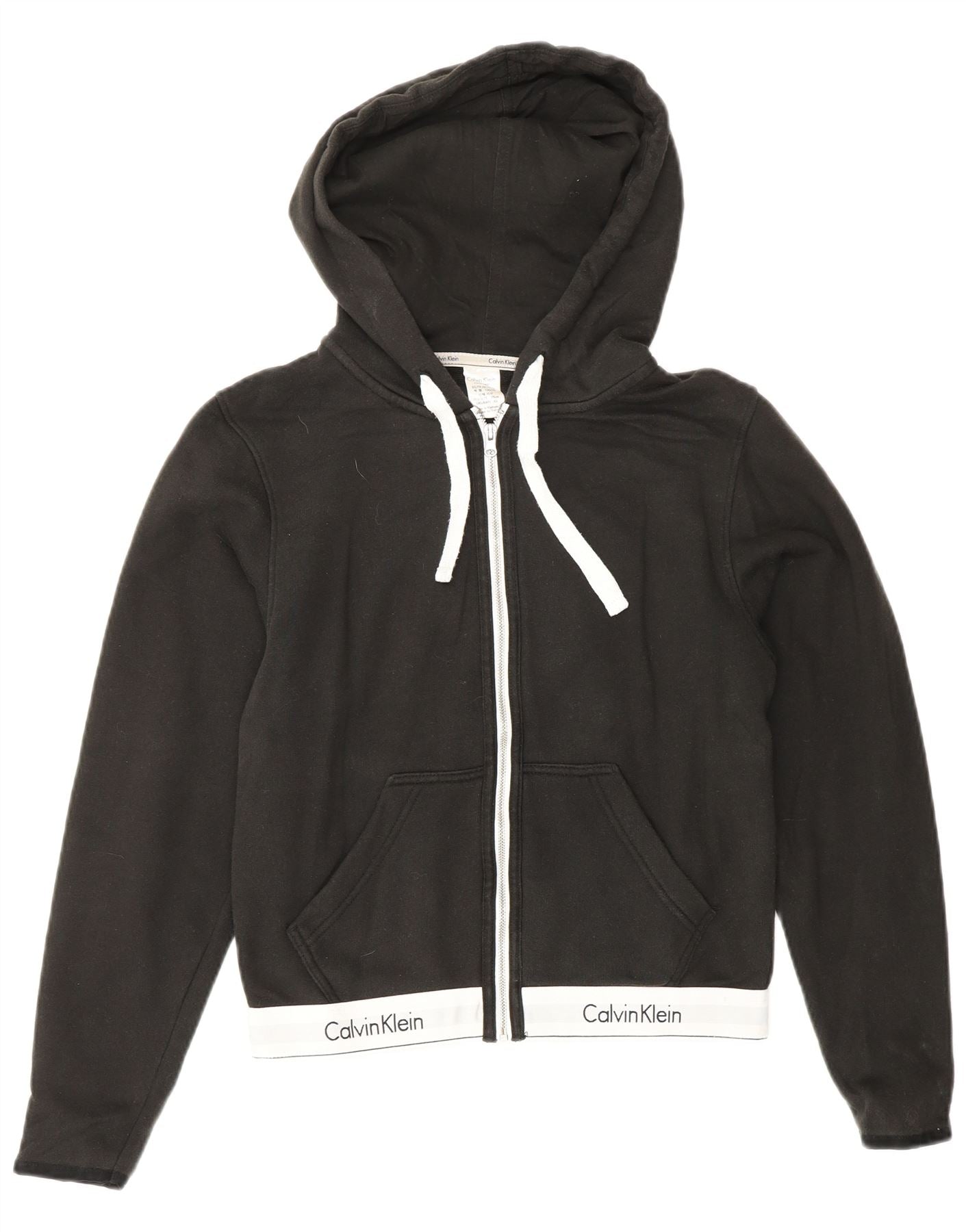 Suéter feminino CALVIN KLEIN com capuz e zíper UK 6 XS preto colorblock