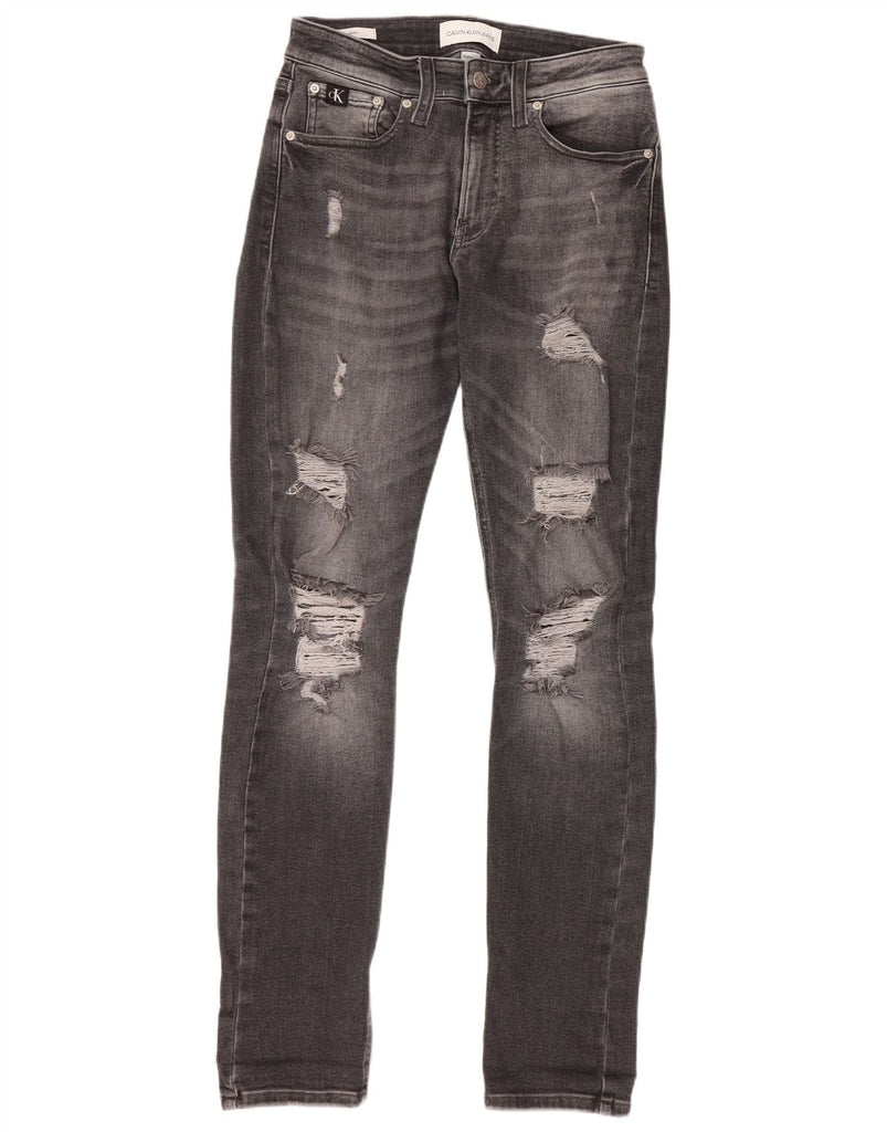 CALVIN KLEIN Womens Distressed Skinny Jeans W30 L32 Grey Cotton