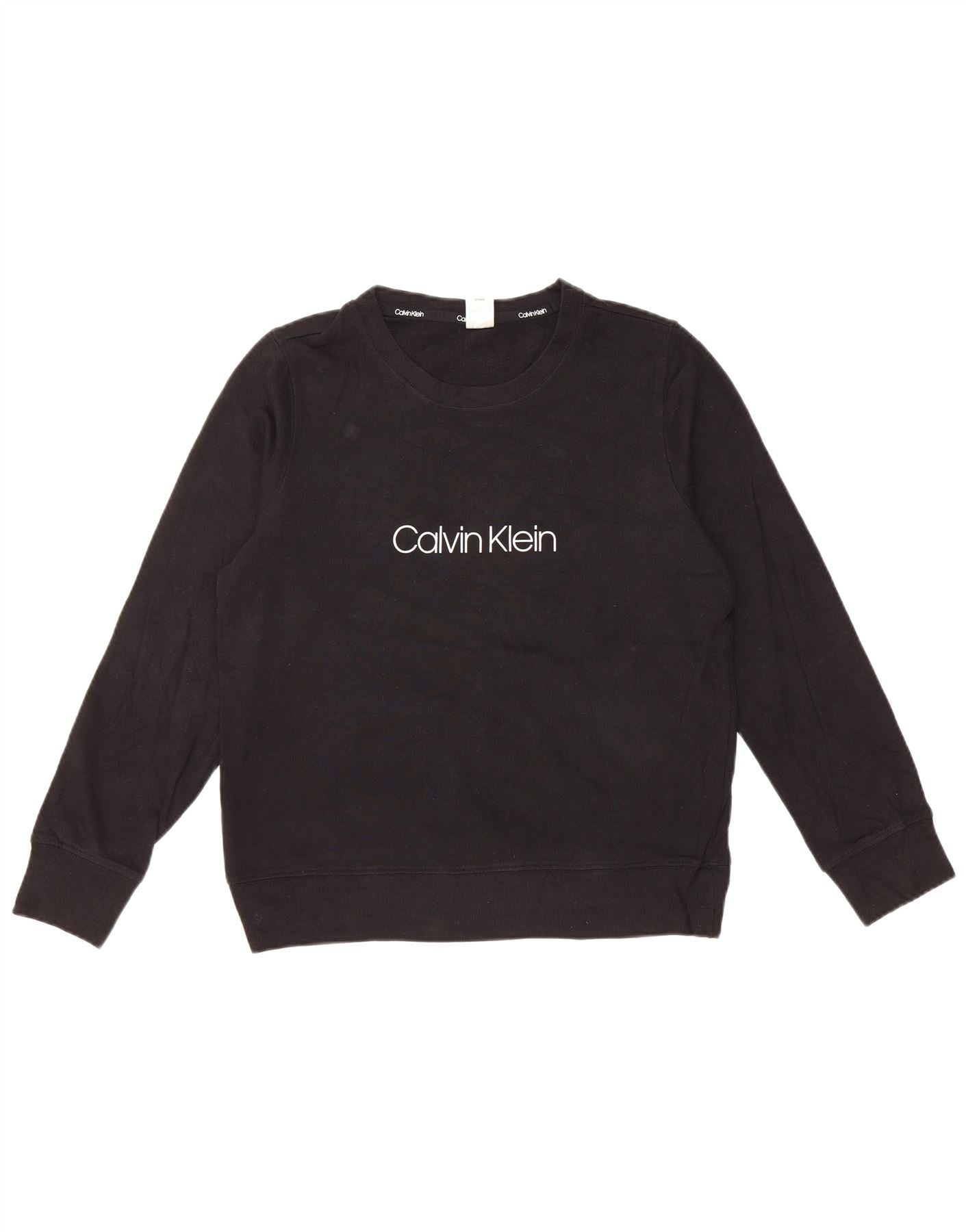 CALVIN KLEIN moletom gráfico feminino jumper UK 14 médio algodão preto
