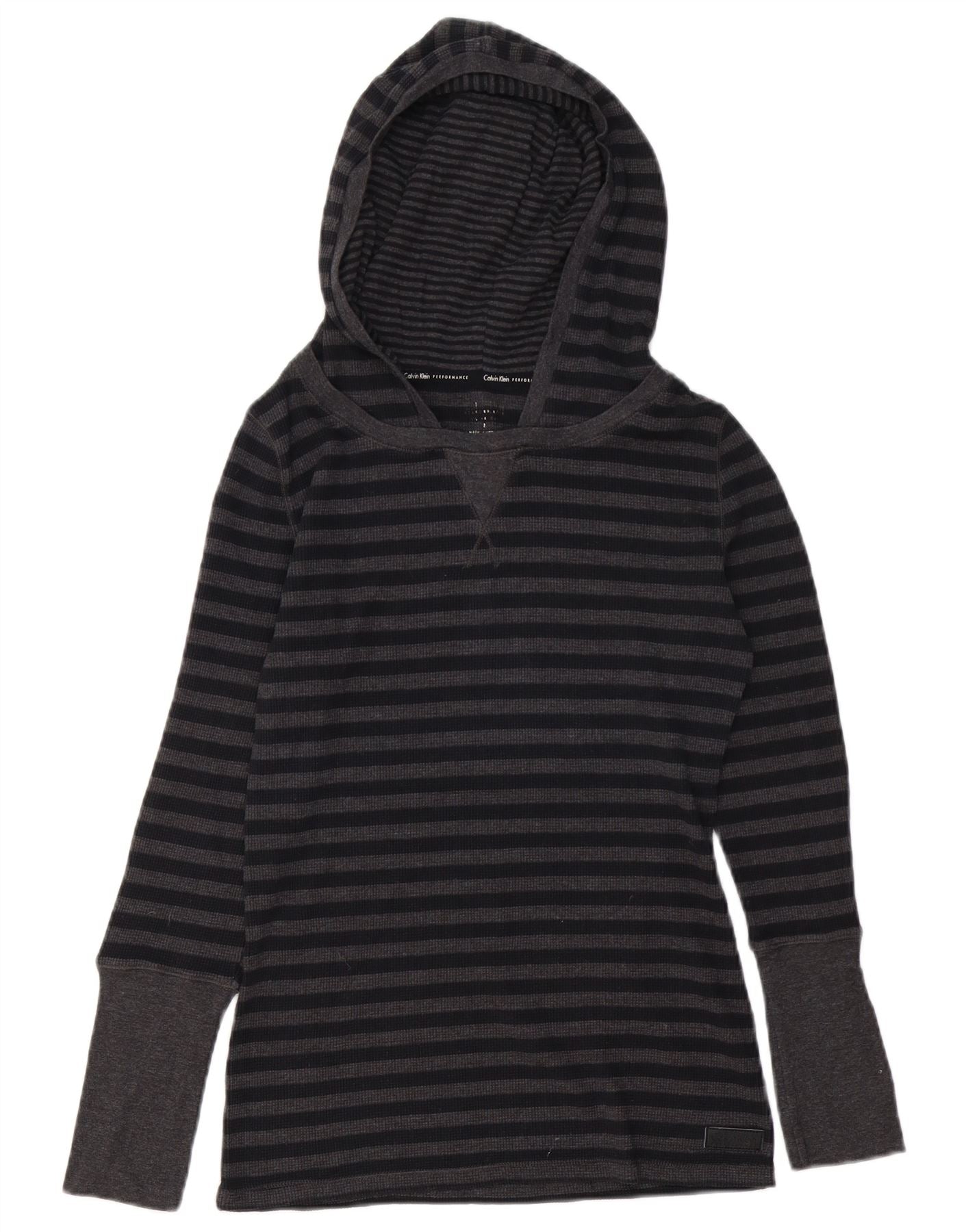 Calvin Klein Top feminino com capuz manga comprida Reino Unido 12 algodão listrado cinza médio