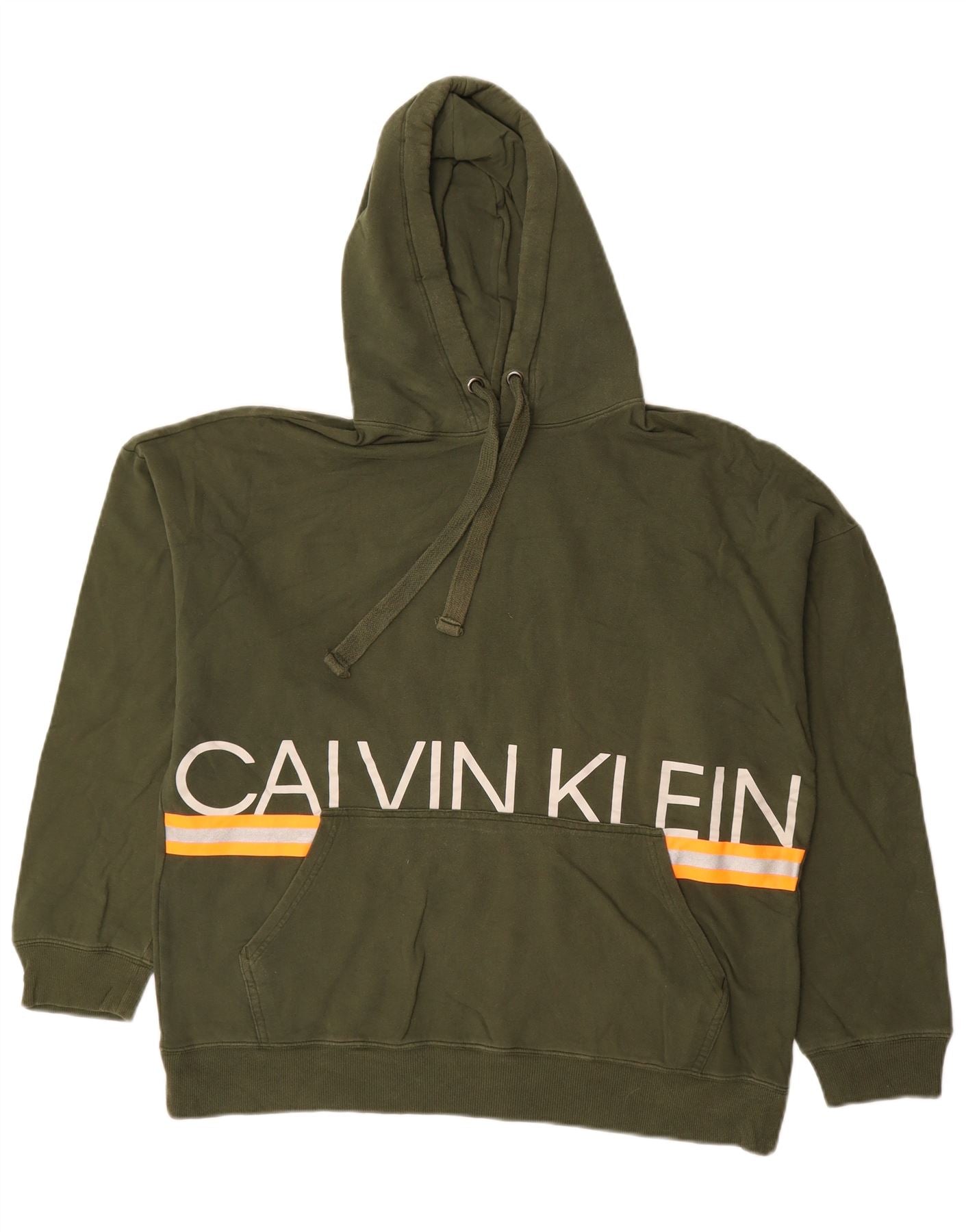 Suéter feminino com capuz gráfico grande CALVIN KLEIN Reino Unido 16 grande cáqui