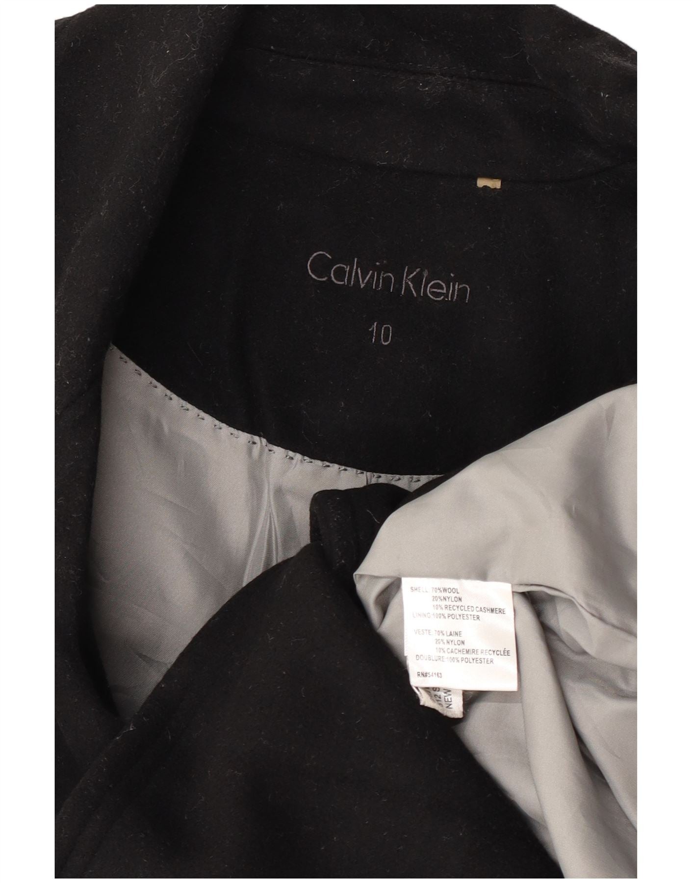 Casaco feminino Calvin Klein Pea US 10 grande lã preta