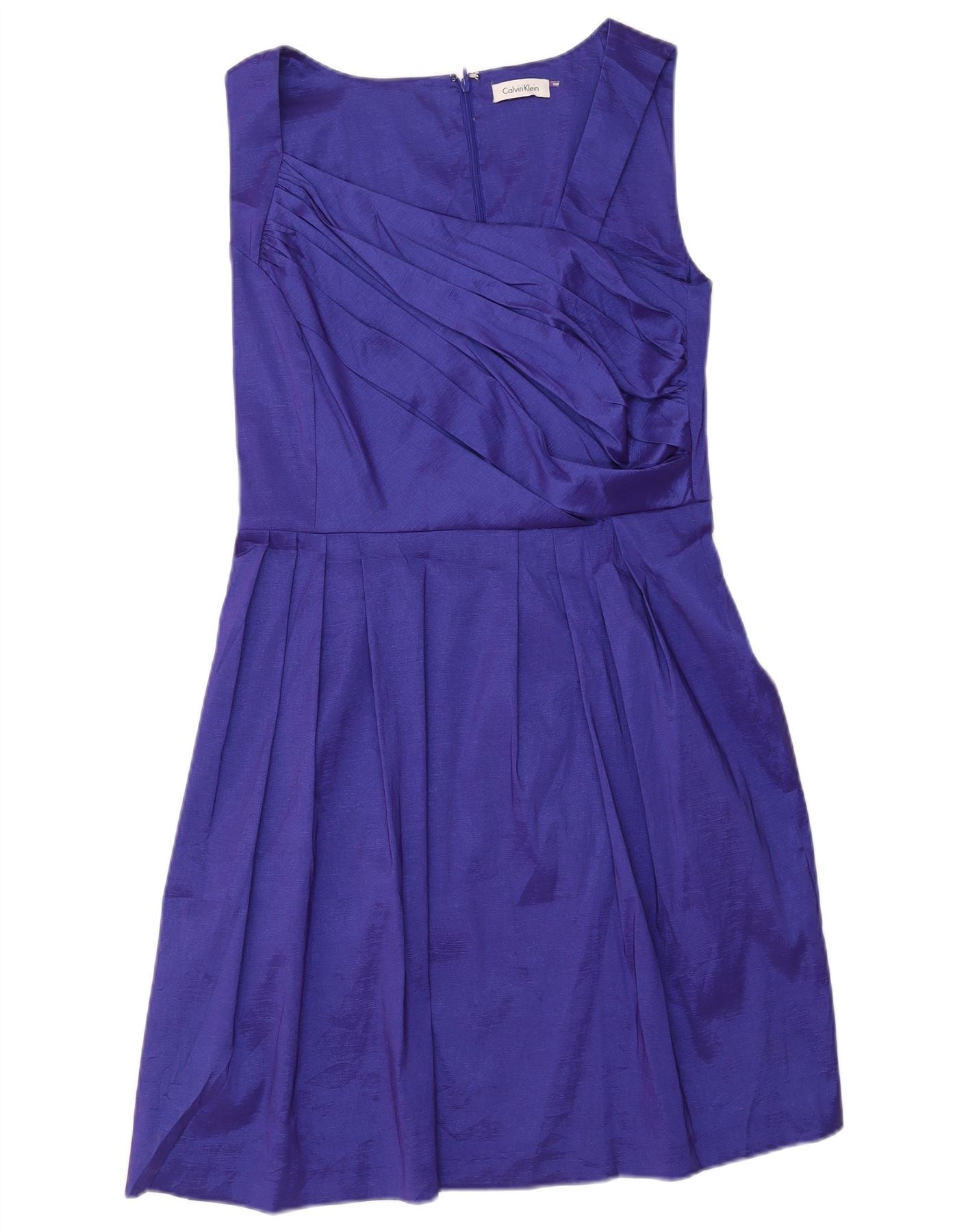 CALVIN KLEIN Vestido feminino sem mangas evasê EUA 12 poliéster roxo médio