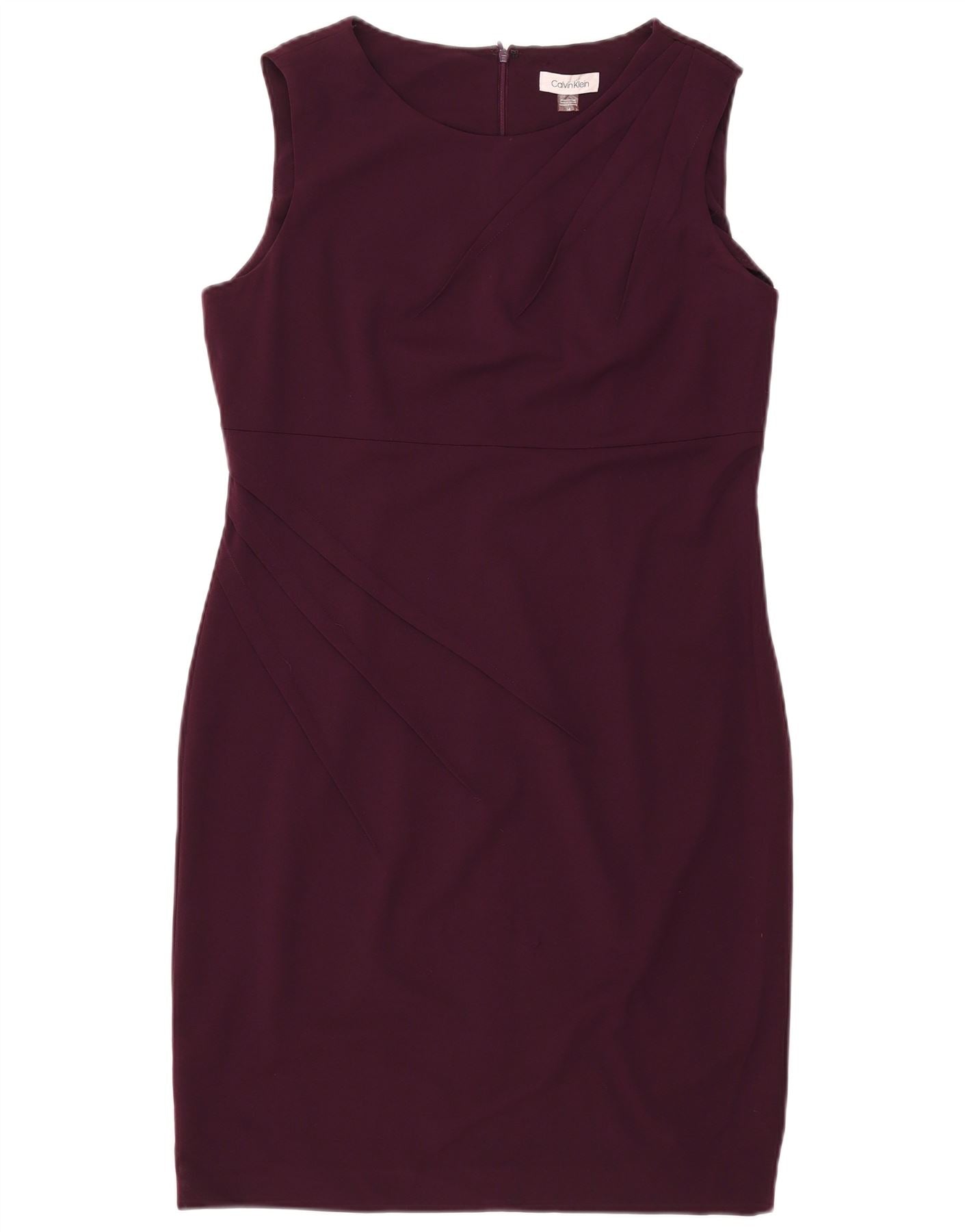 CALVIN KLEIN Vestido feminino sem mangas com bainha US 14 grande poliéster cor de vinho