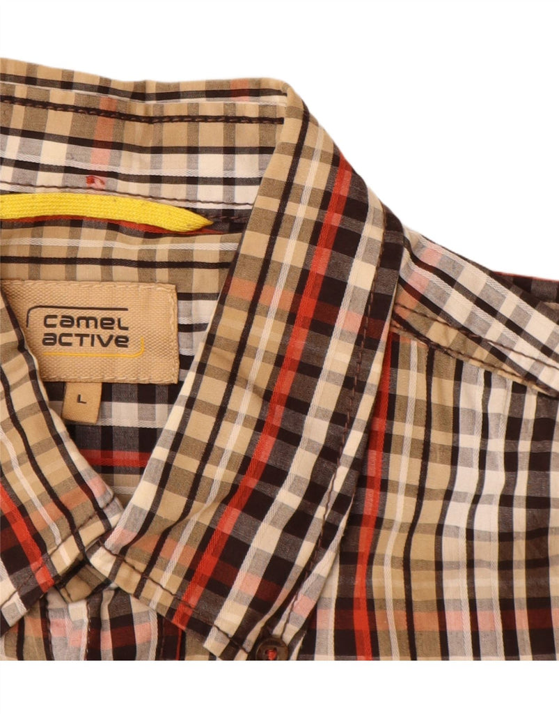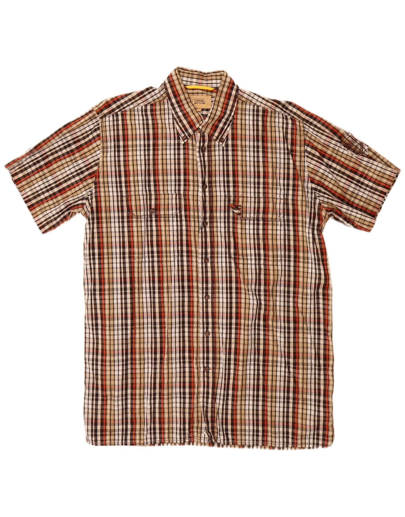 CAMEL ACTIVE Camisa masculina de manga curta grande algodão xadrez multicolorido