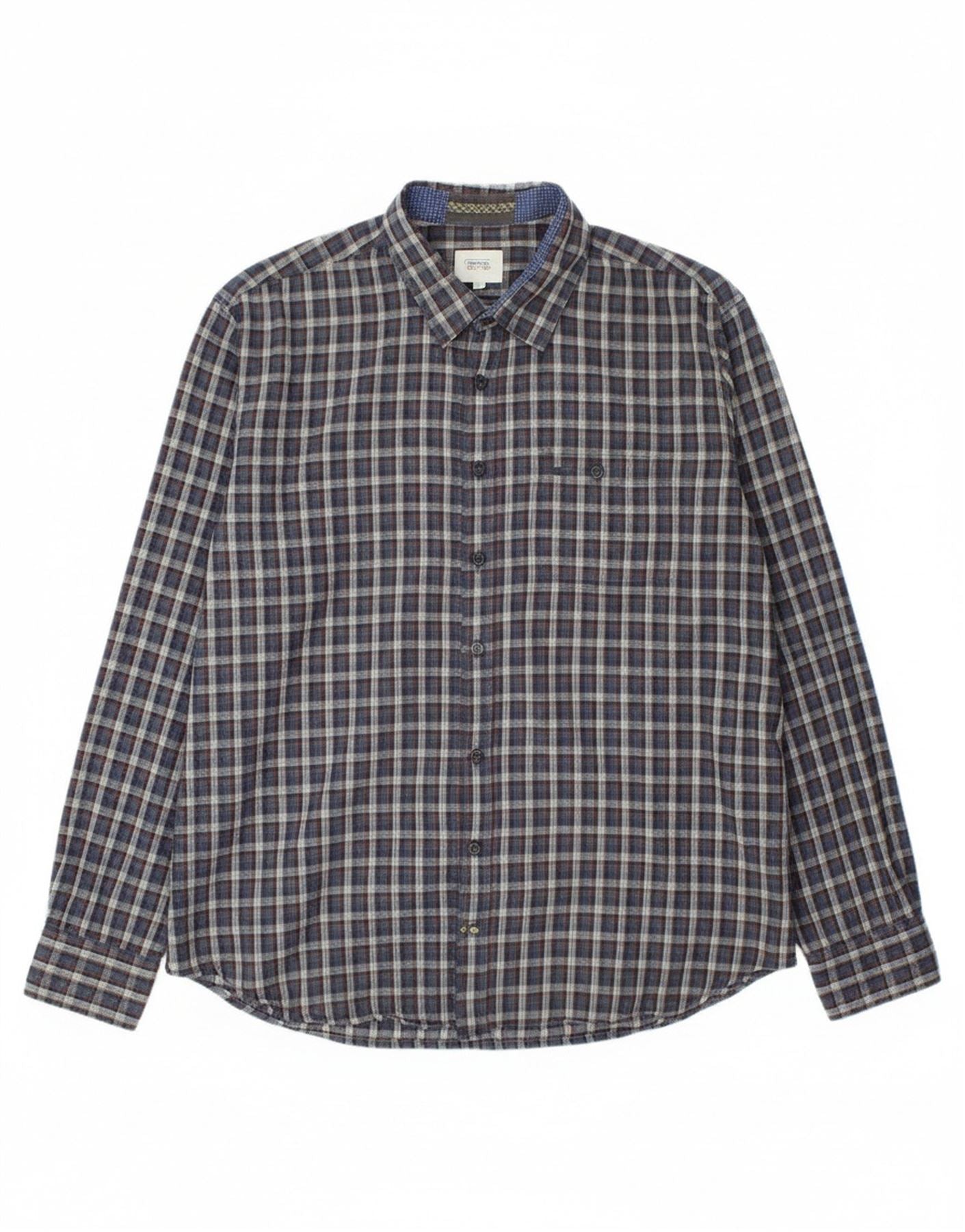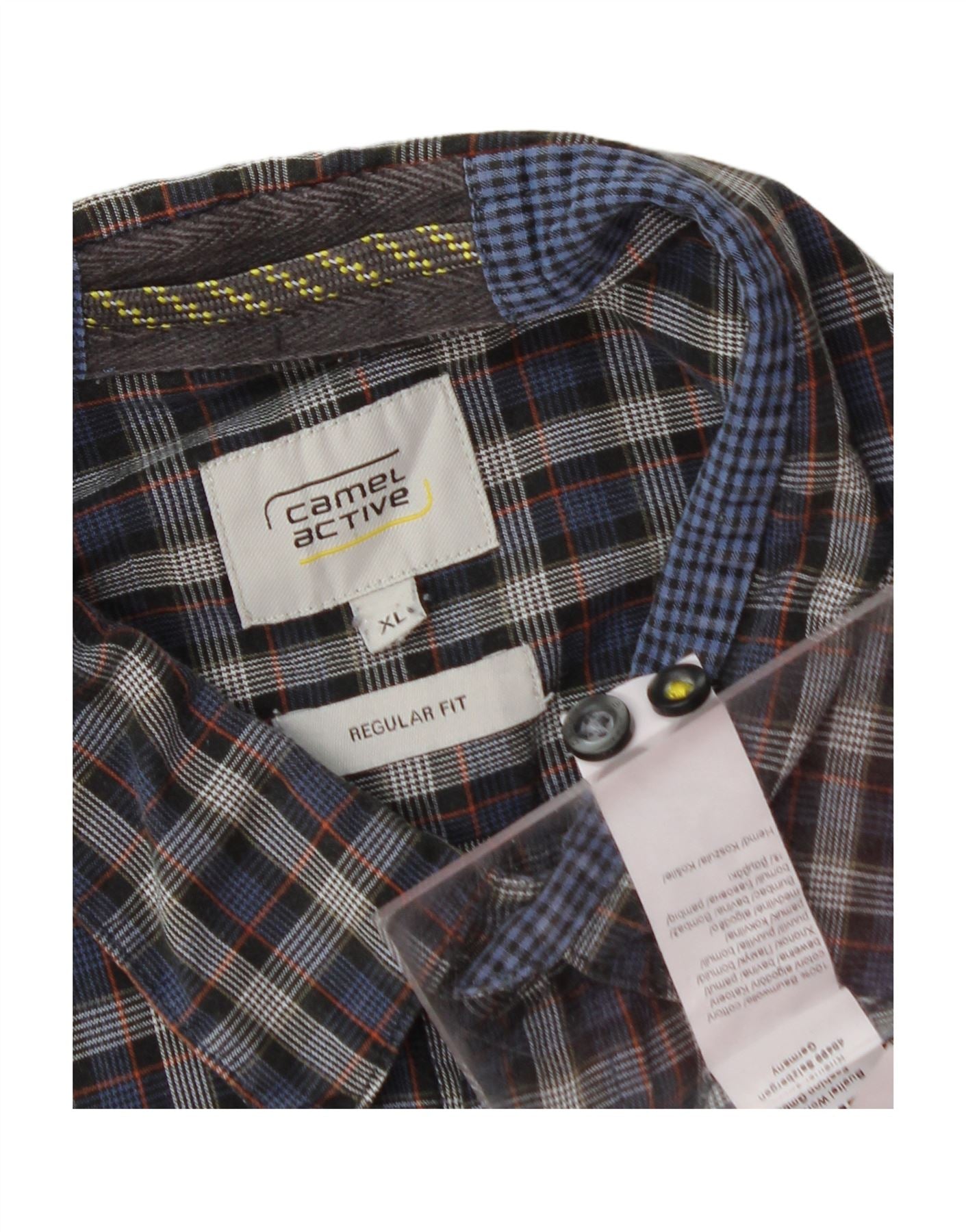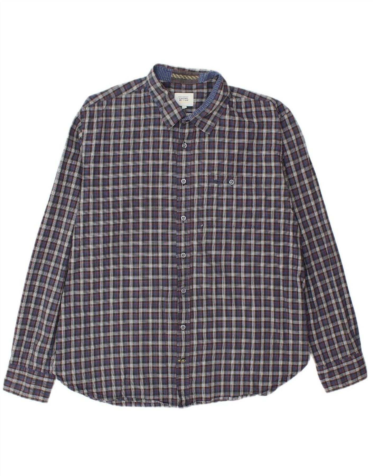 CAMEL Camisa masculina de flanela de ajuste regular XL azul marinho algodão xadrez
