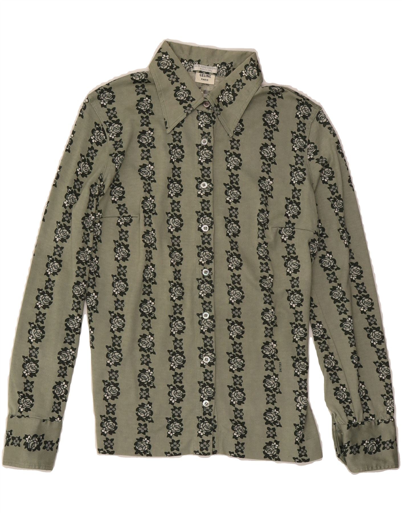 Camisa feminina CELINE IT 42 médio cáqui floral algodão designer