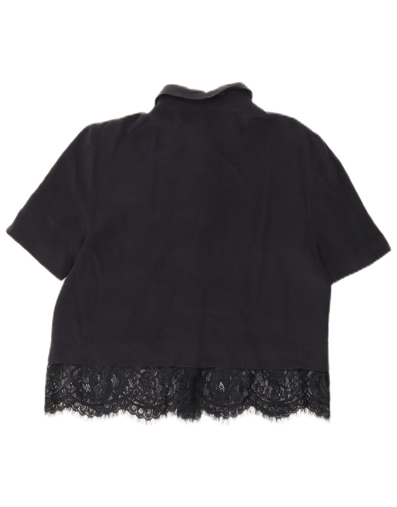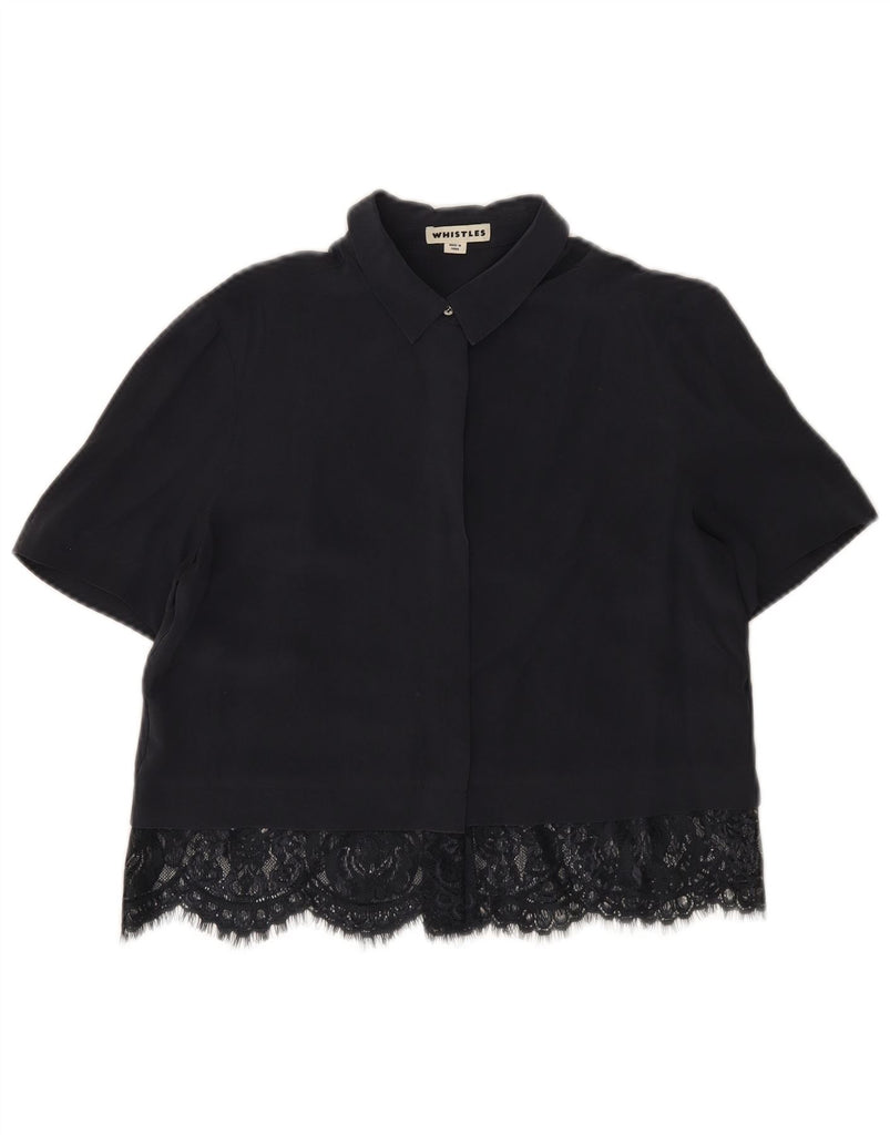 Camisa feminina de manga curta WHISTLES Reino Unido 8 pequena seda azul marinho