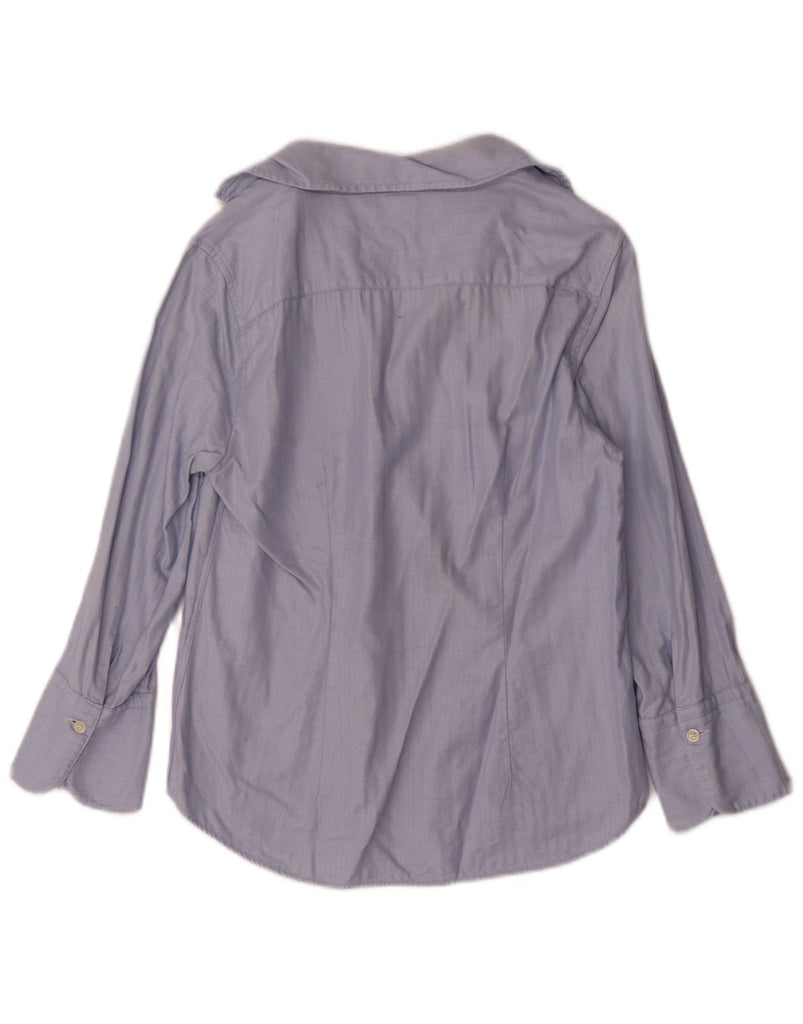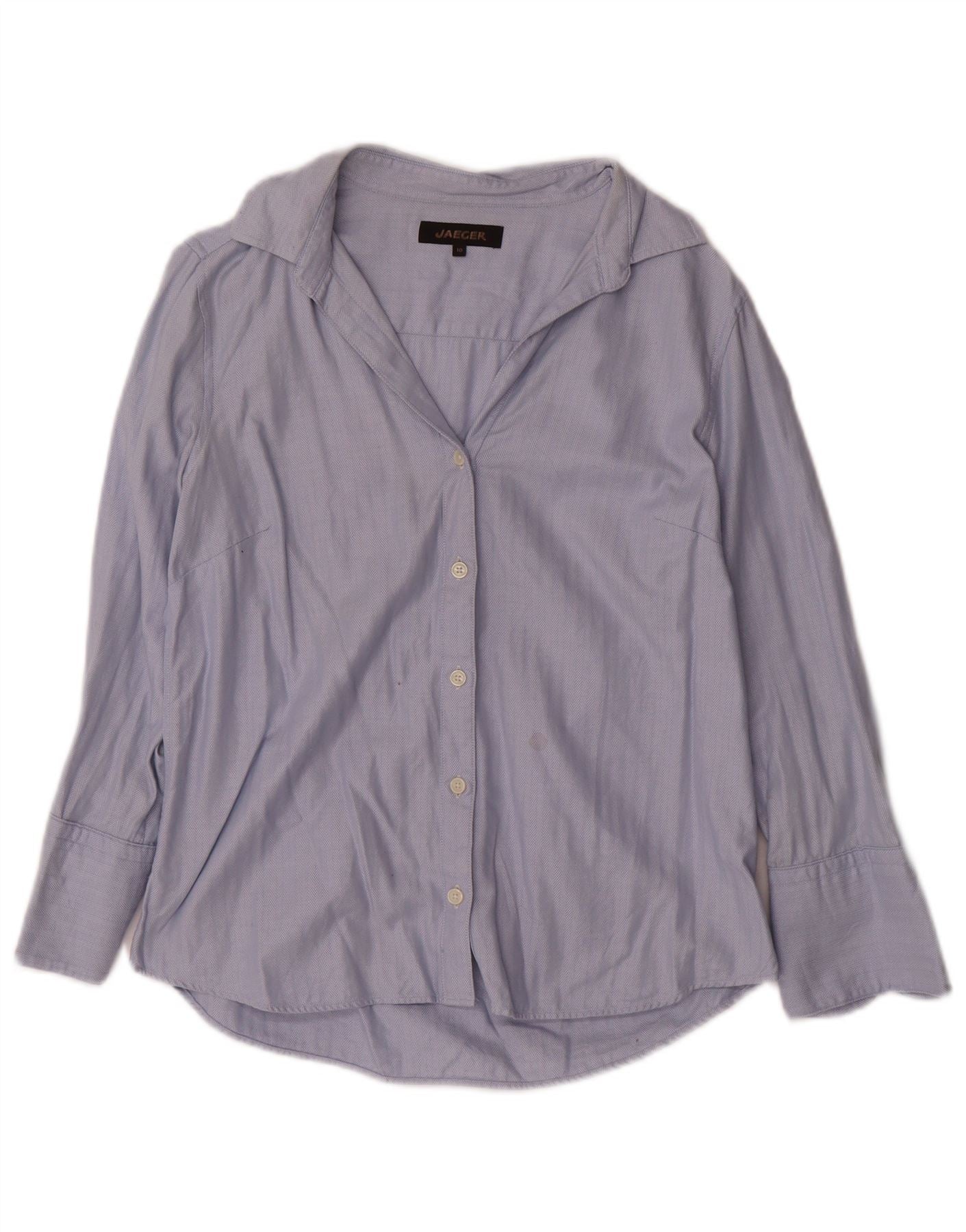 Camisa feminina solta JAEGER Reino Unido 10 algodão espinha de peixe azul pequeno