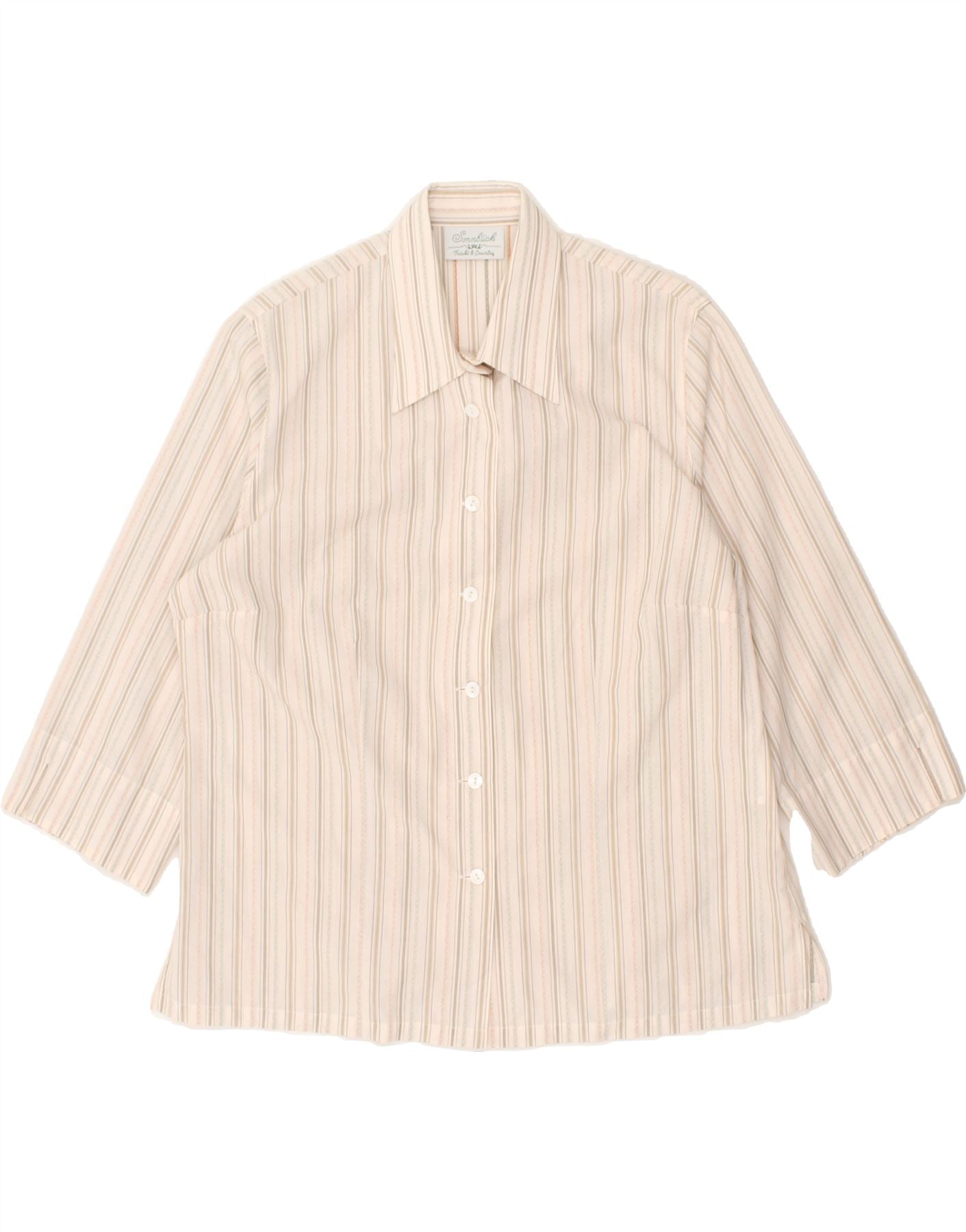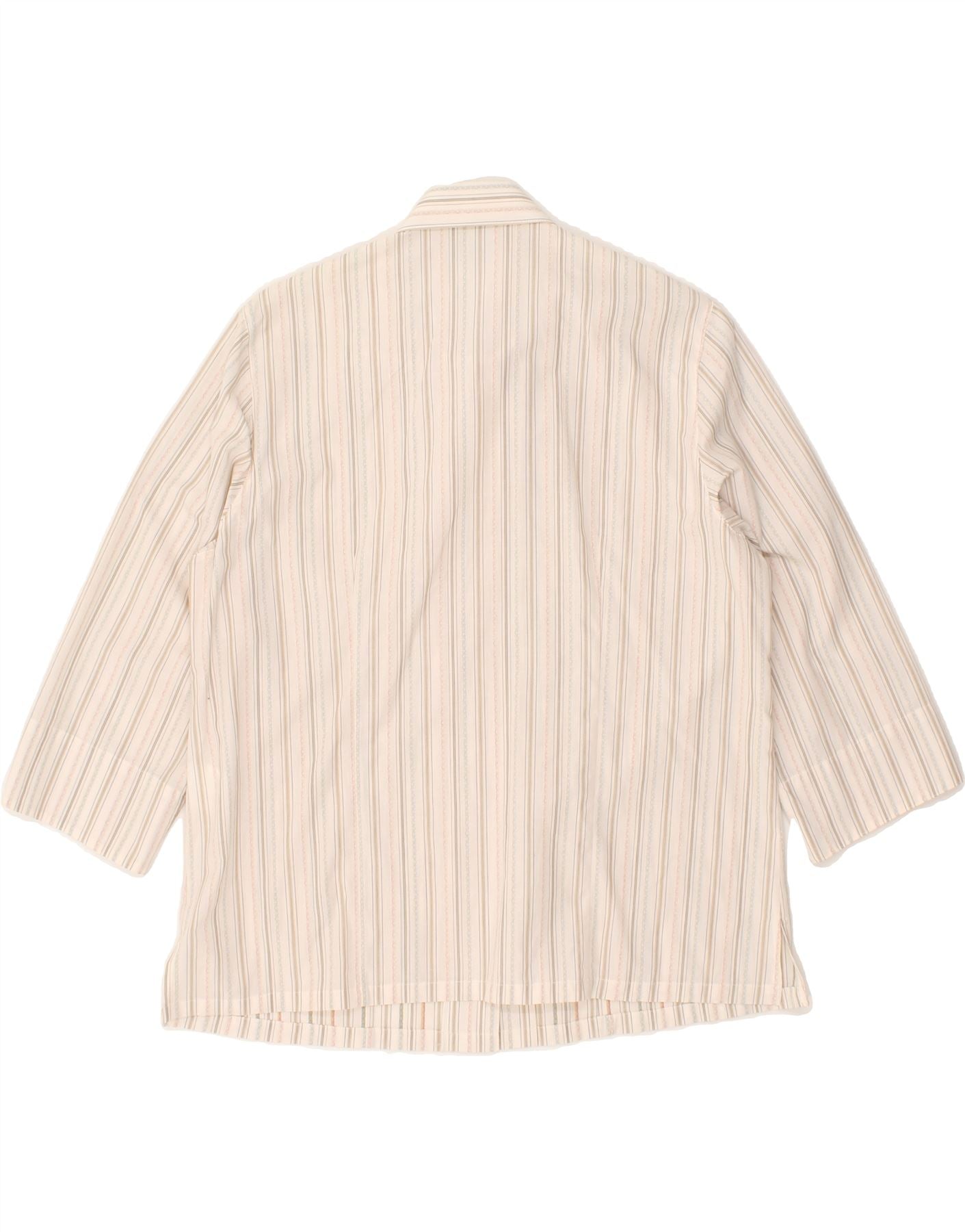 Camisa feminina VINTAGE manga 3/4 EU 40 algodão listrado cinza médio