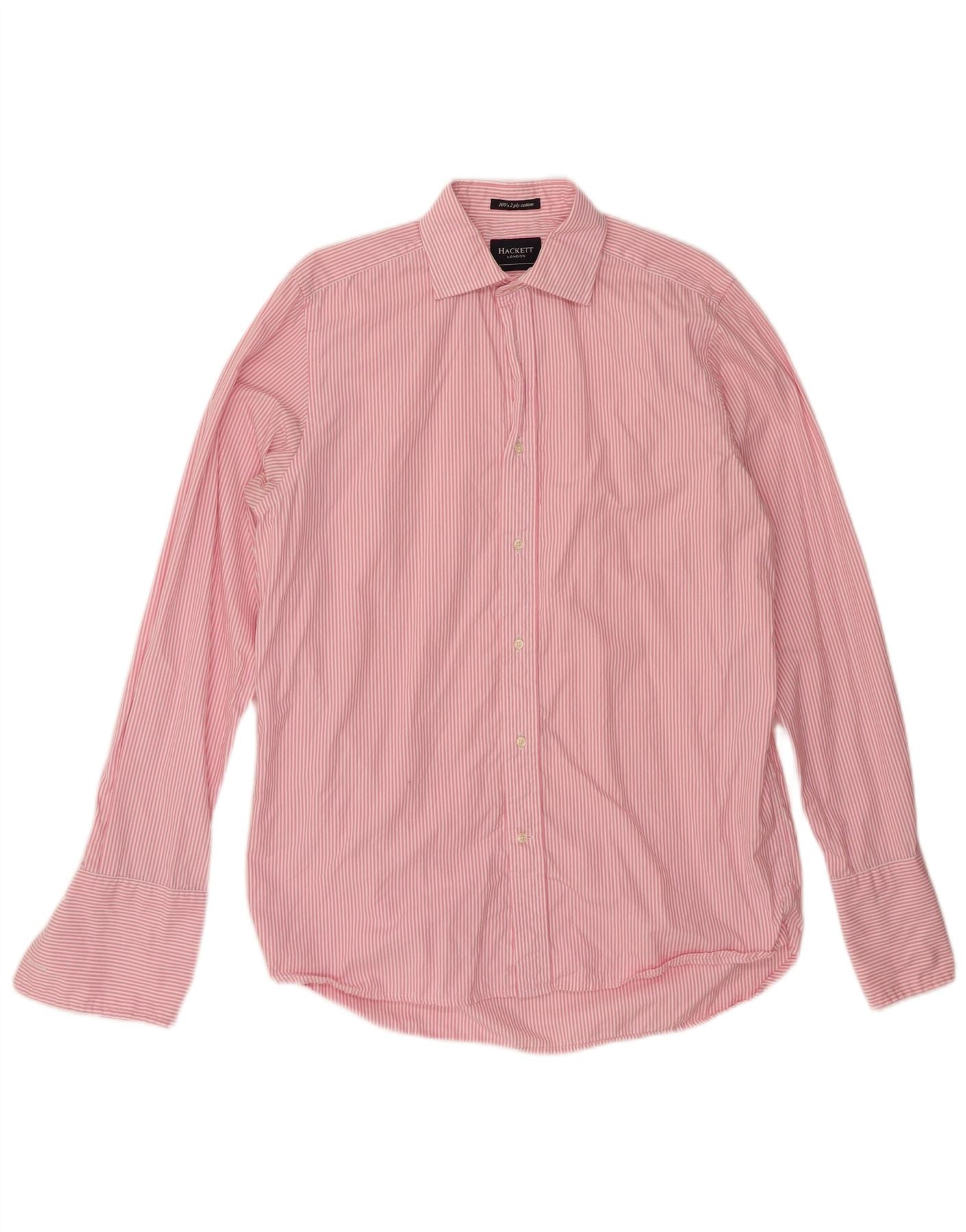 Camisa formal masculina HACKETT tamanho 15 1/2 39 algodão listrado rosa médio