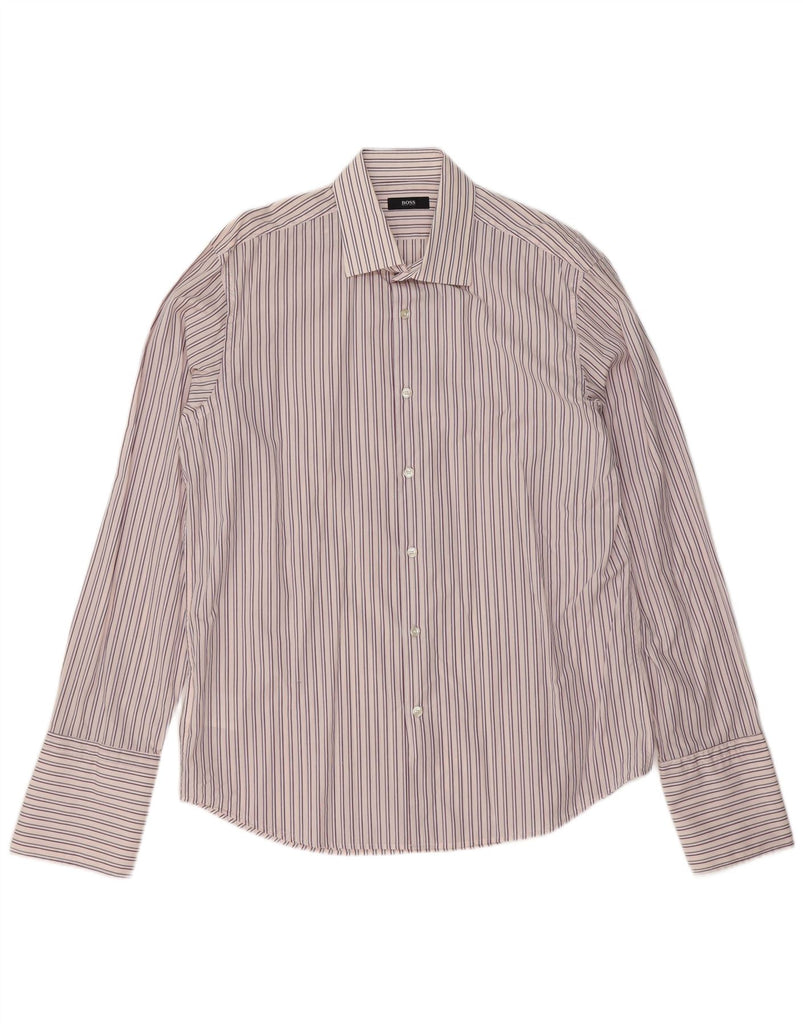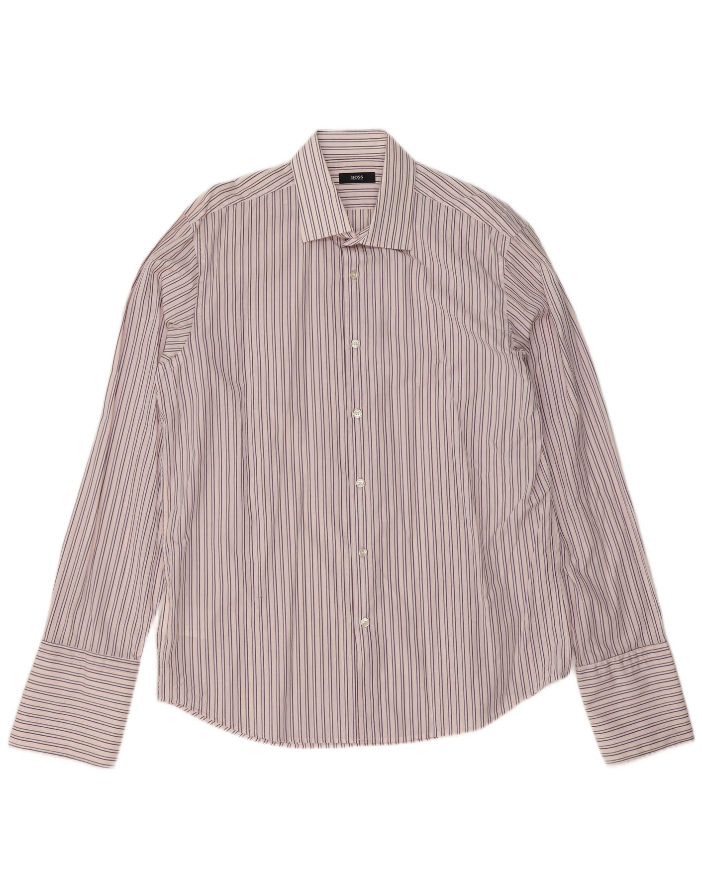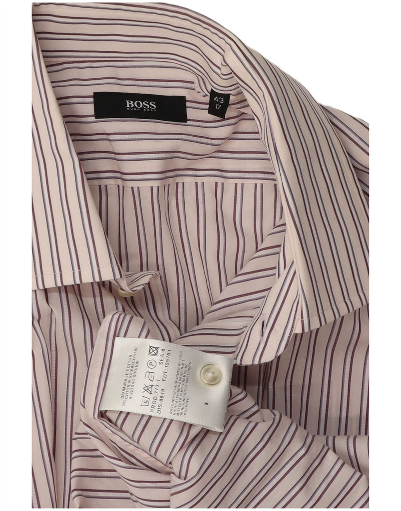Camisa formal masculina HUGO BOSS tamanho 17 XL algodão listrado branco