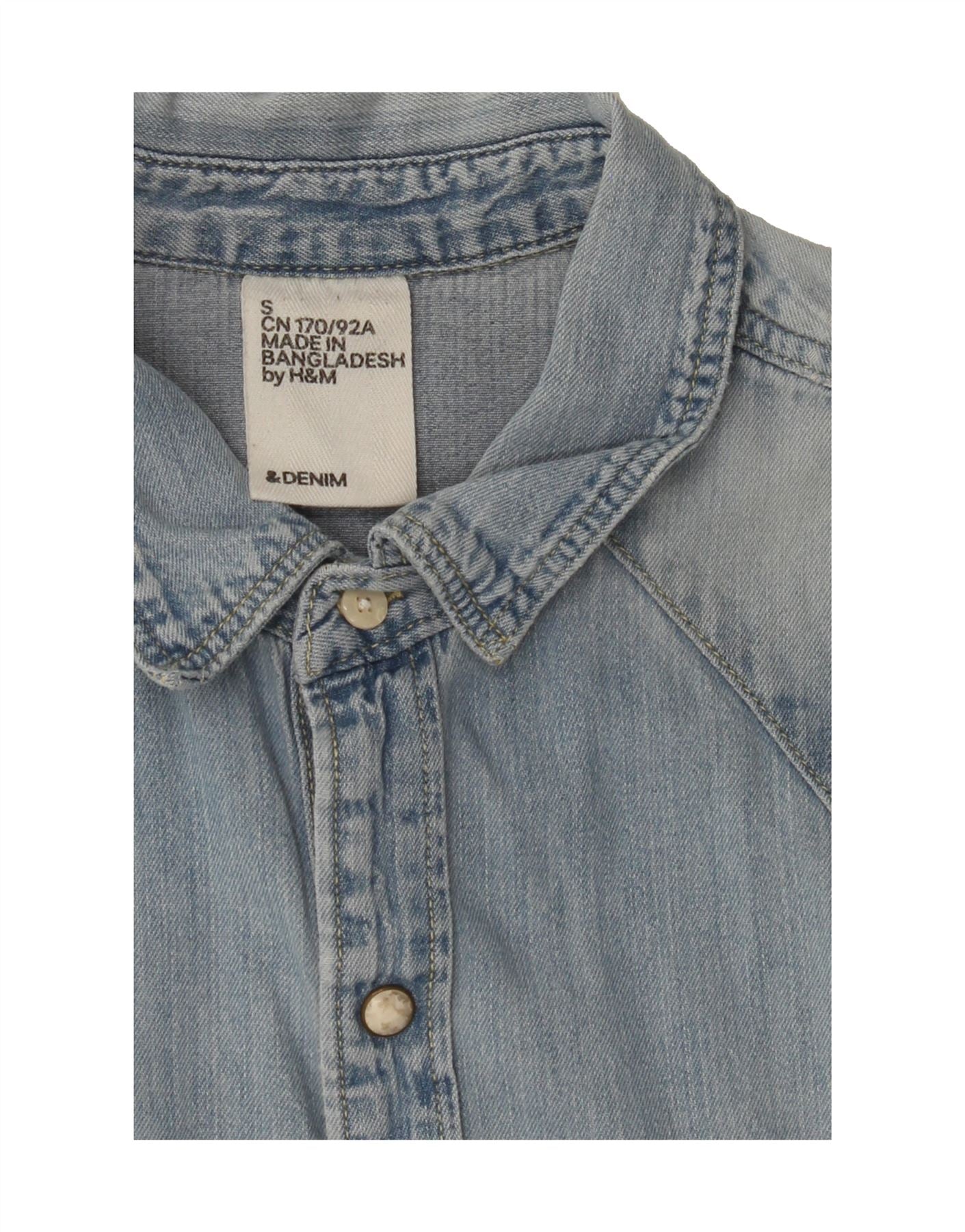 - Descrição da IA: Esta camisa jeans usada da H&M é uma adição versátil ao guarda-roupa de qualquer homem. Confeccionada em jeans de qualidade em tom azul, esta camisa de manga comprida apresenta decote com gola e corte regular para uso confortável e casual. O fecho de botão e os bolsos acrescentam praticidade. Embora esteja em excelentes condições, há um pequeno desbotamento geral e uma leve descoloração ao redor da gola. Tamanho S. Fabricado em Bangladesh.