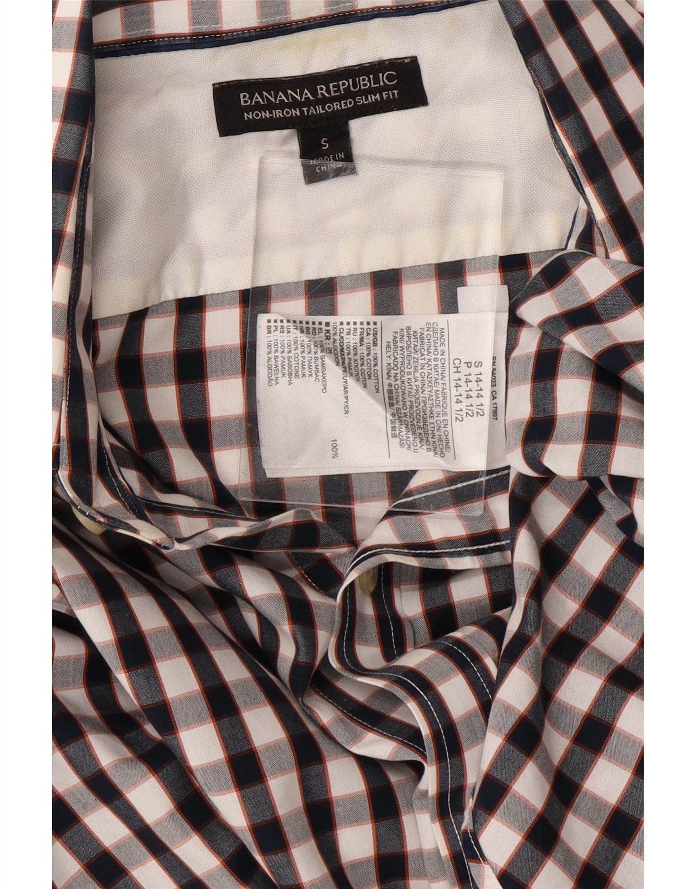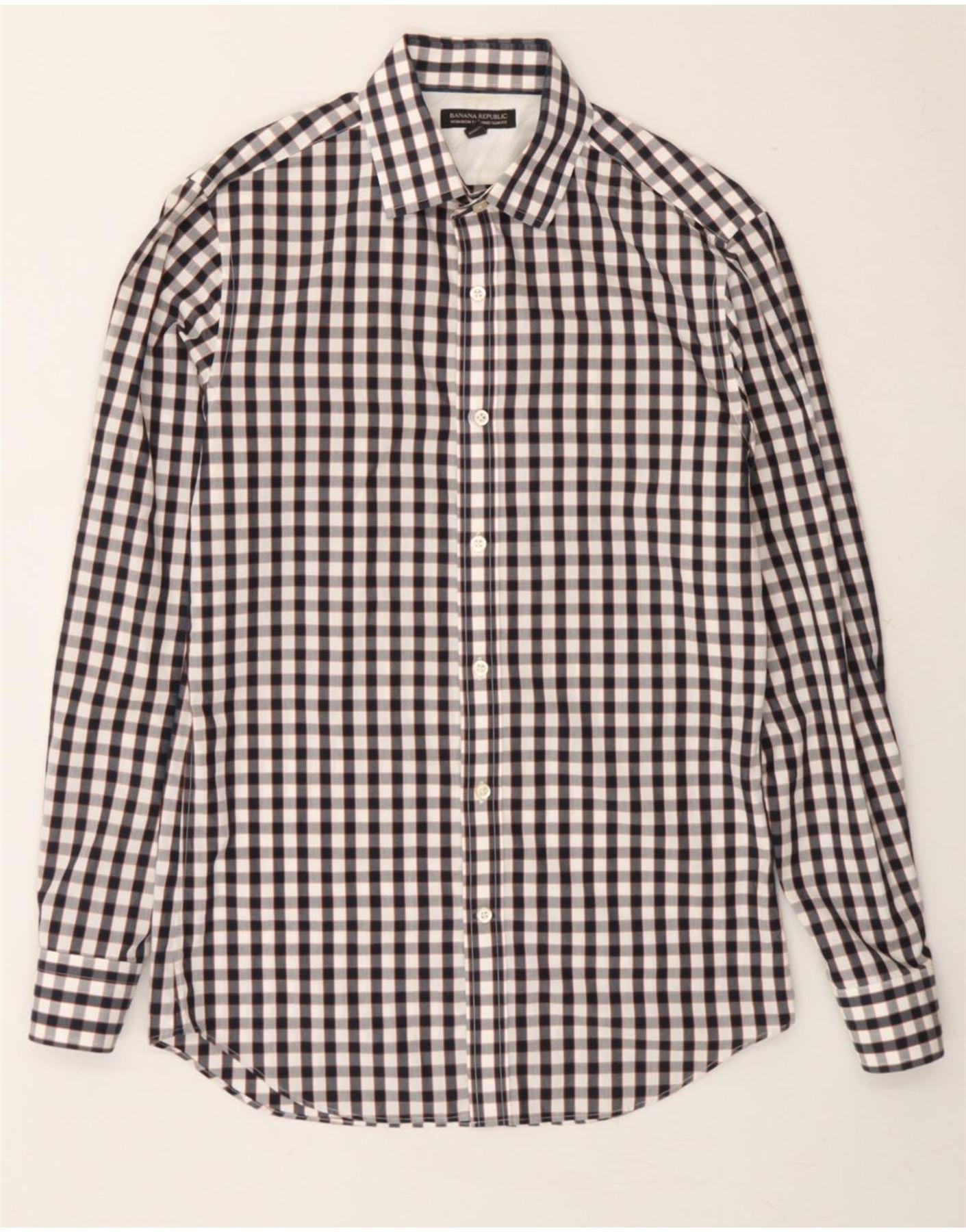 Camisa masculina BANANA REPUBLIC tamanho 14 1/2 algodão xadrez preto pequeno