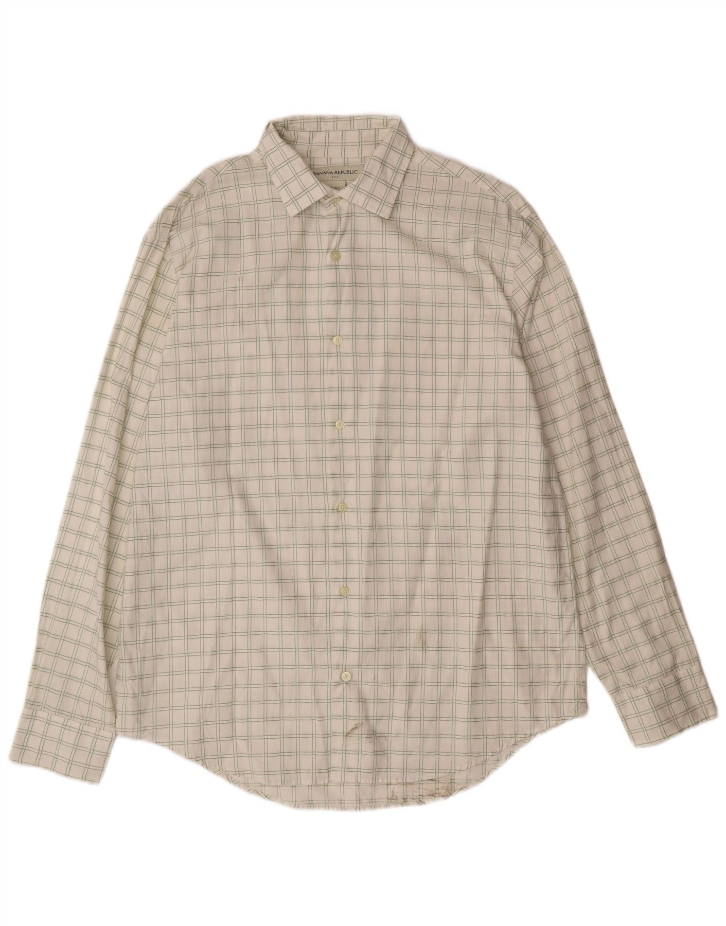 Camisa masculina BANANA REPUBLIC tamanho 16 1/2 grande algodão xadrez branco
