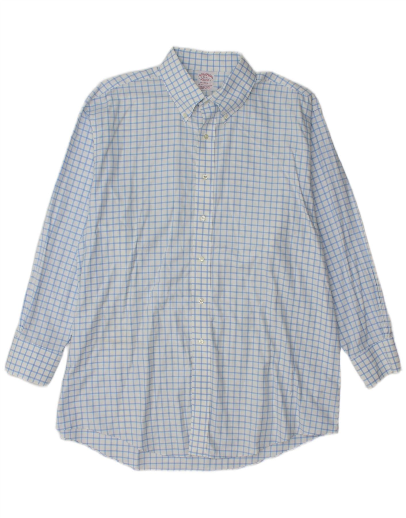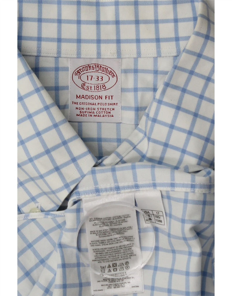 Camisa masculina BROOKS BROTHERS Madison Fit tamanho 17 XL algodão xadrez azul