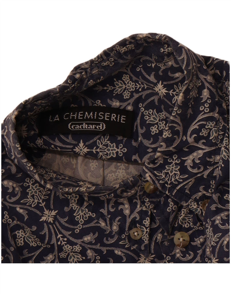 - Descrição da IA: Esta camisa masculina Cacharel é confeccionada em tecido fino em um sofisticado azul marinho. Possui um decote clássico com gola e botões frontais completos para um visual atemporal. As mangas compridas e o ajuste regular garantem um uso confortável. Um sutil padrão floral abstrato adiciona um toque distinto, tornando-o uma peça versátil para qualquer guarda-roupa.