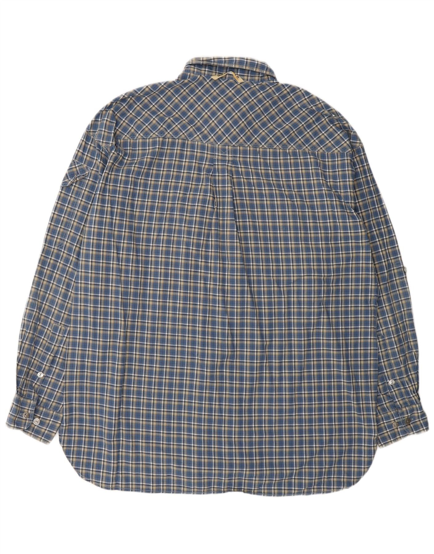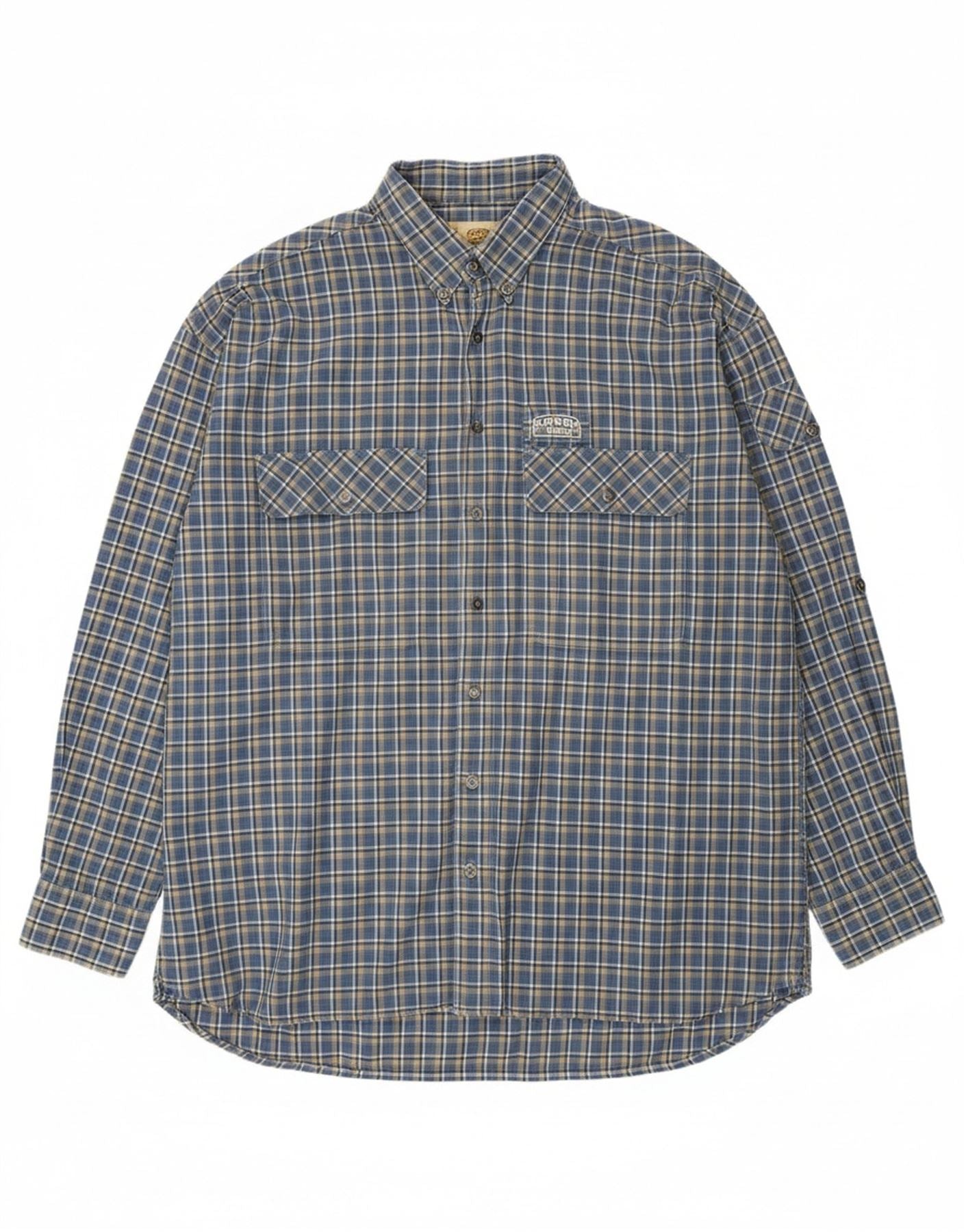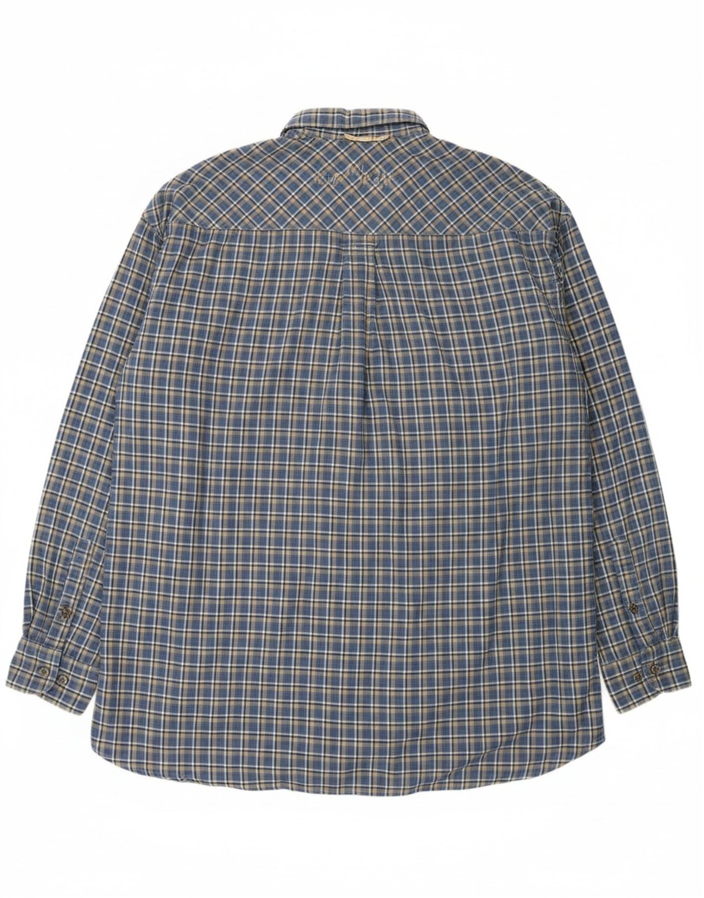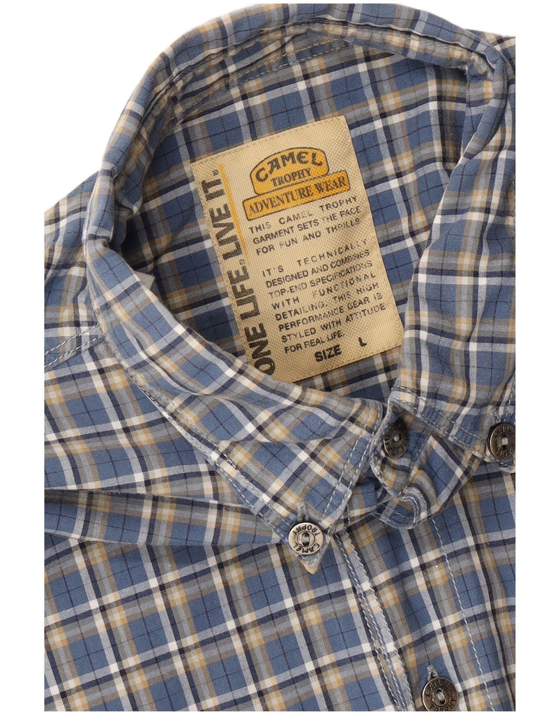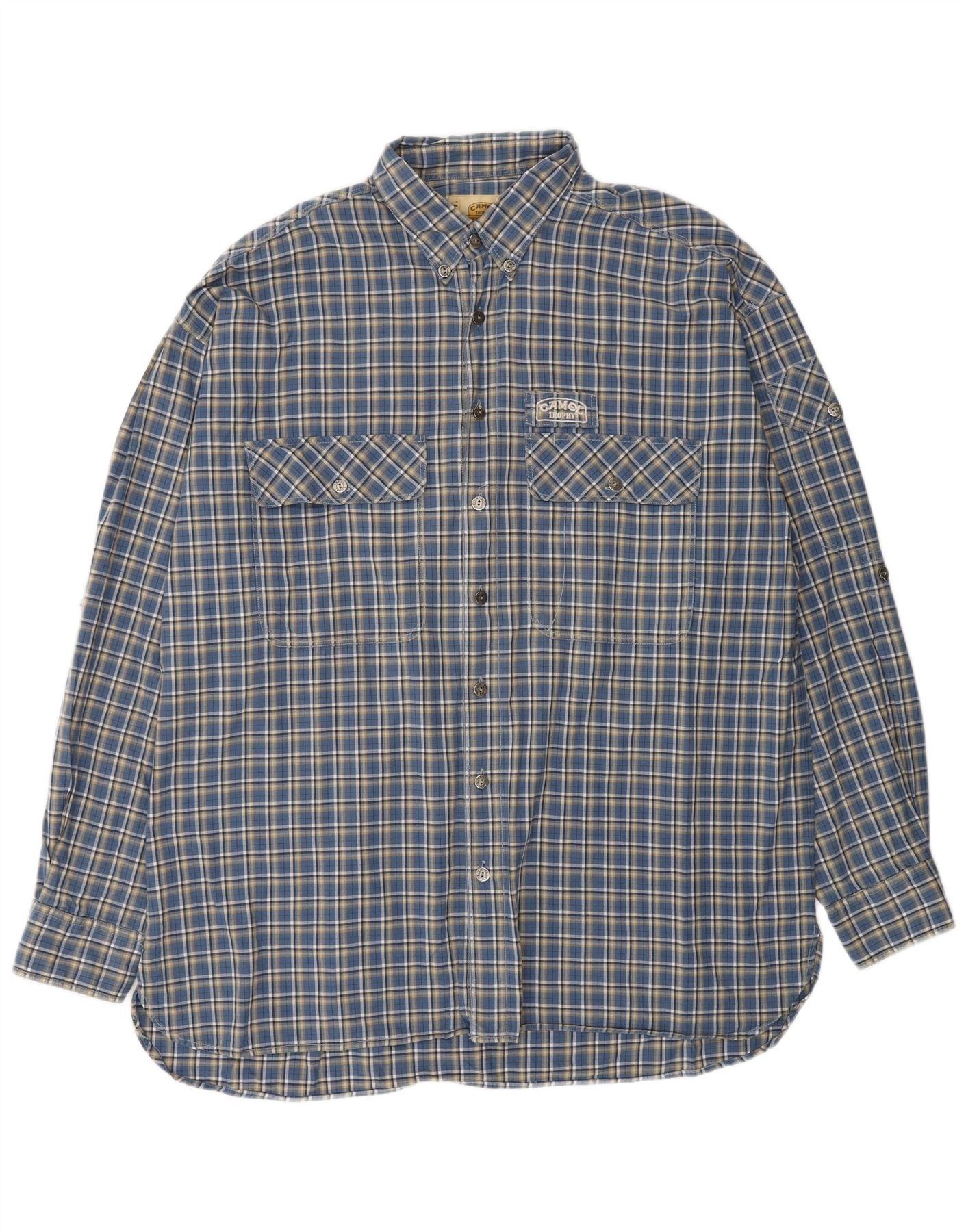 - Descrição da IA: Esta camisa masculina Camel apresenta um clássico padrão xadrez azul tecido em um tecido macio e durável. O decote com gola e botões frontais completos oferecem um visual casual elegante e atemporal. Mangas compridas com punhos abotoados proporcionam um acabamento elegante. Um ajuste regular garante um uso confortável. Os bolsos no peito acrescentam detalhes práticos ao design.