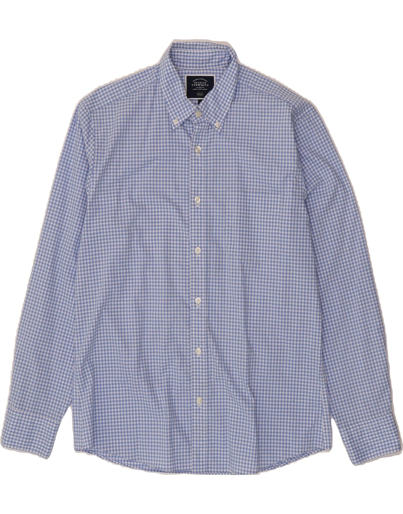 Camisa masculina CHARLES TYRWHITT slim fit de algodão guingão azul médio