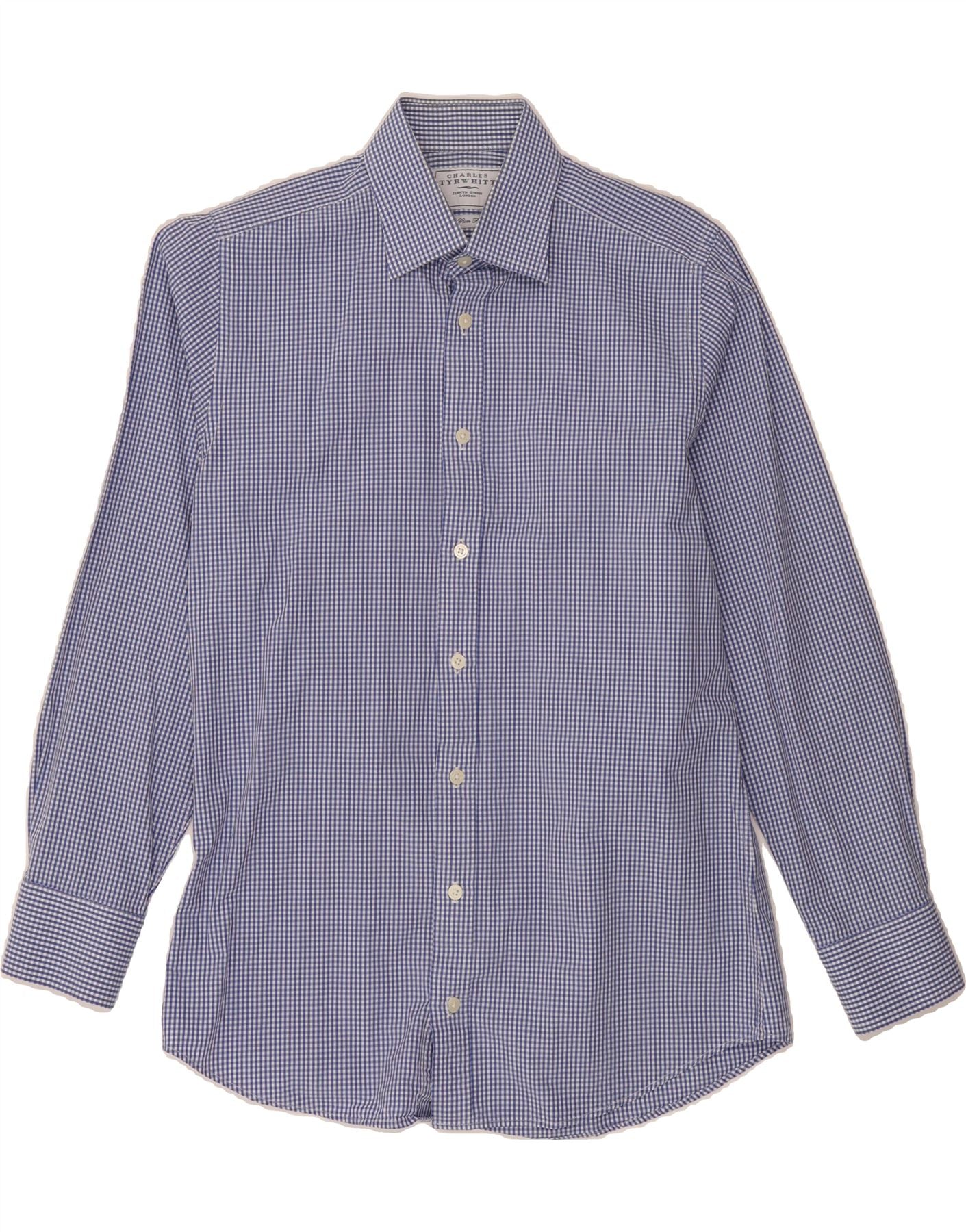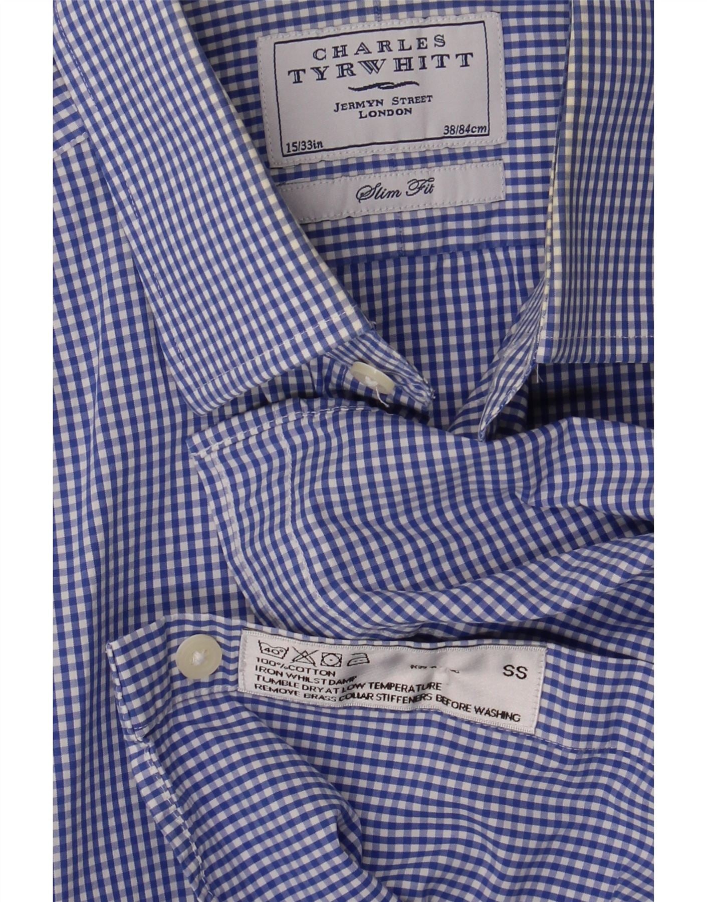 Camisa masculina CHARLES TYRWHITT slim fit tamanho 15 38 algodão guingão azul médio