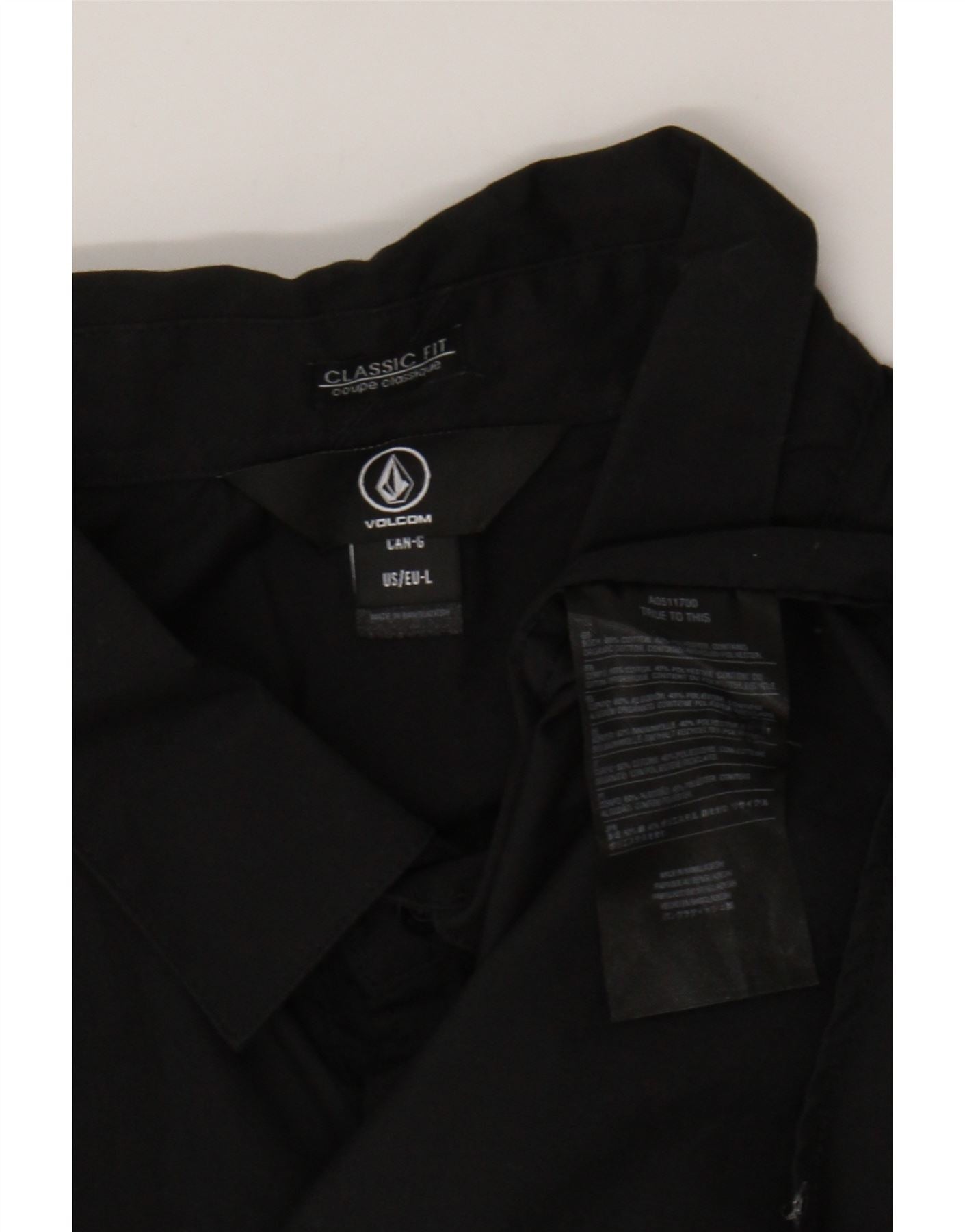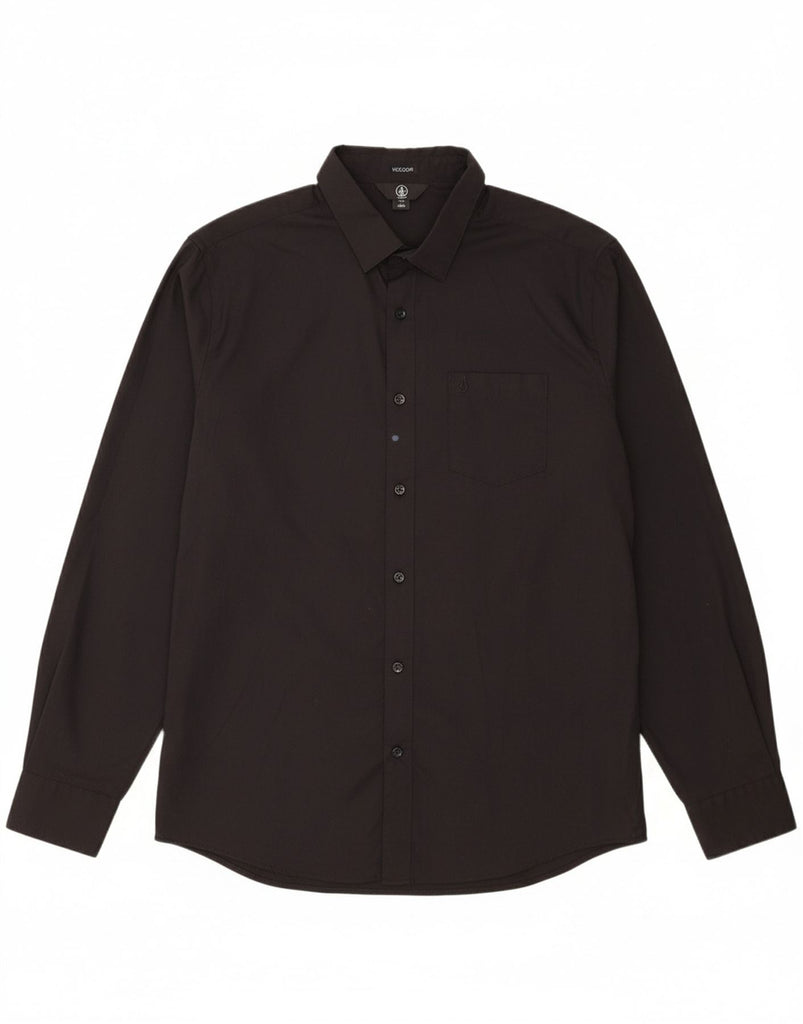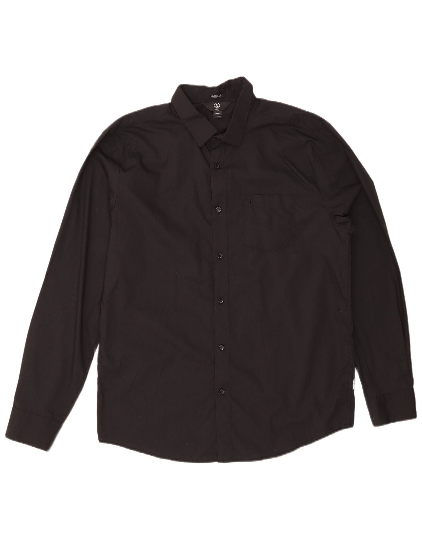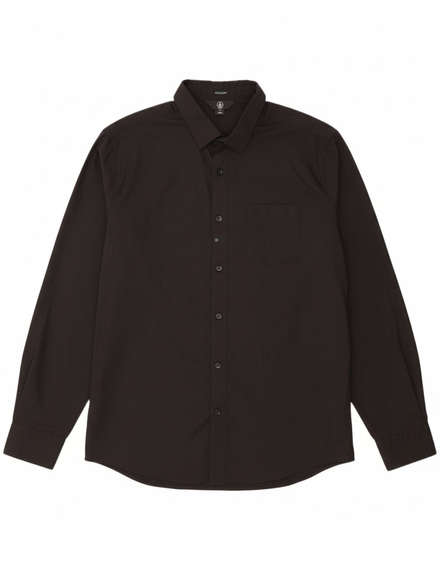 - Descrição da IA: Esta camisa formal masculina da Volcom é confeccionada em uma mistura preta de algodão e poliéster, oferecendo um acabamento liso. Possui um decote clássico com gola e botões frontais completos para um visual refinado. As mangas compridas estreitam-se até aos punhos abotoados, enquanto os bolsos no peito acrescentam detalhes práticos. O ajuste regular garante um uso confortável, tornando-o uma escolha versátil para ocasiões elegantes.