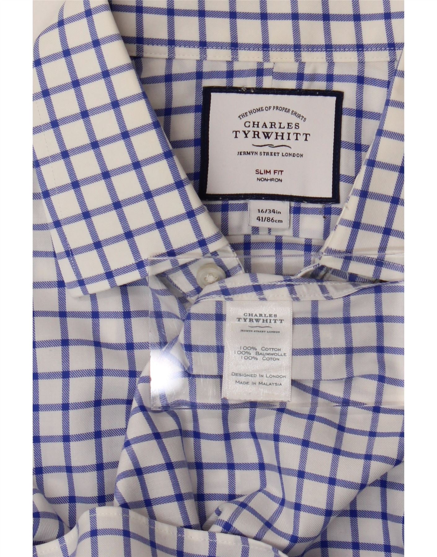 Camisa masculina de flanela CHARLES TYRWHITT slim fit tamanho 16 41 grande xadrez azul
