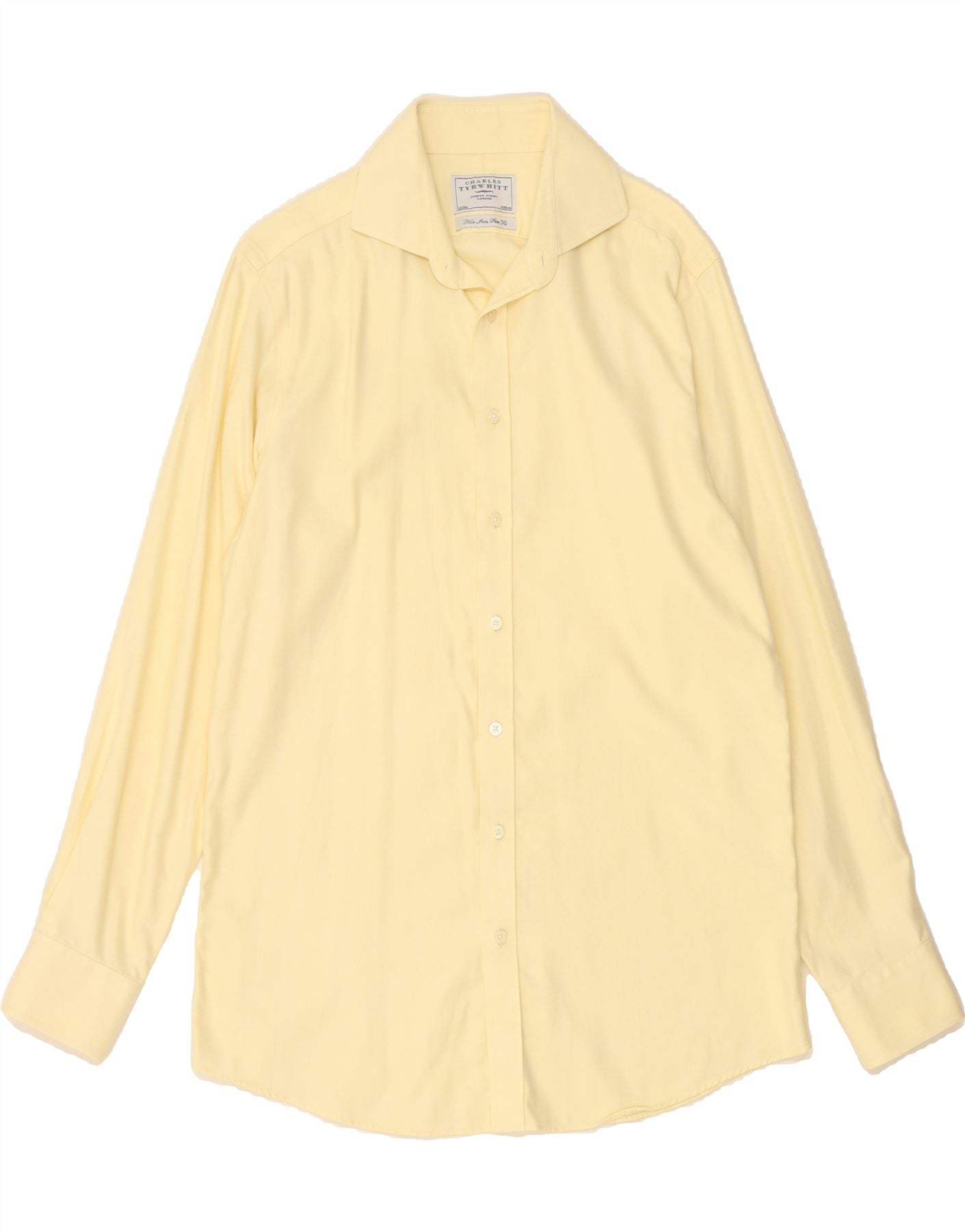 - Descrição da IA: Esta camisa formal Charles Tyrwhitt usada está em excelentes condições. Confeccionada em 100% algodão com tecido trançado, esta camisa justa apresenta mangas compridas e decote clássico com gola. A camisa é amarela e tem fecho de botão. Ele é rotulado como tamanho 16/35 pol. Para cuidados, siga as instruções para não passar a ferro: pendure para secar ou passe a ferro a seu critério em temperatura baixa. Lembre-se de remover os reforços do colar de latão antes de lavar. Uma adição elegante ao guarda-roupa de qualquer cavalheiro.