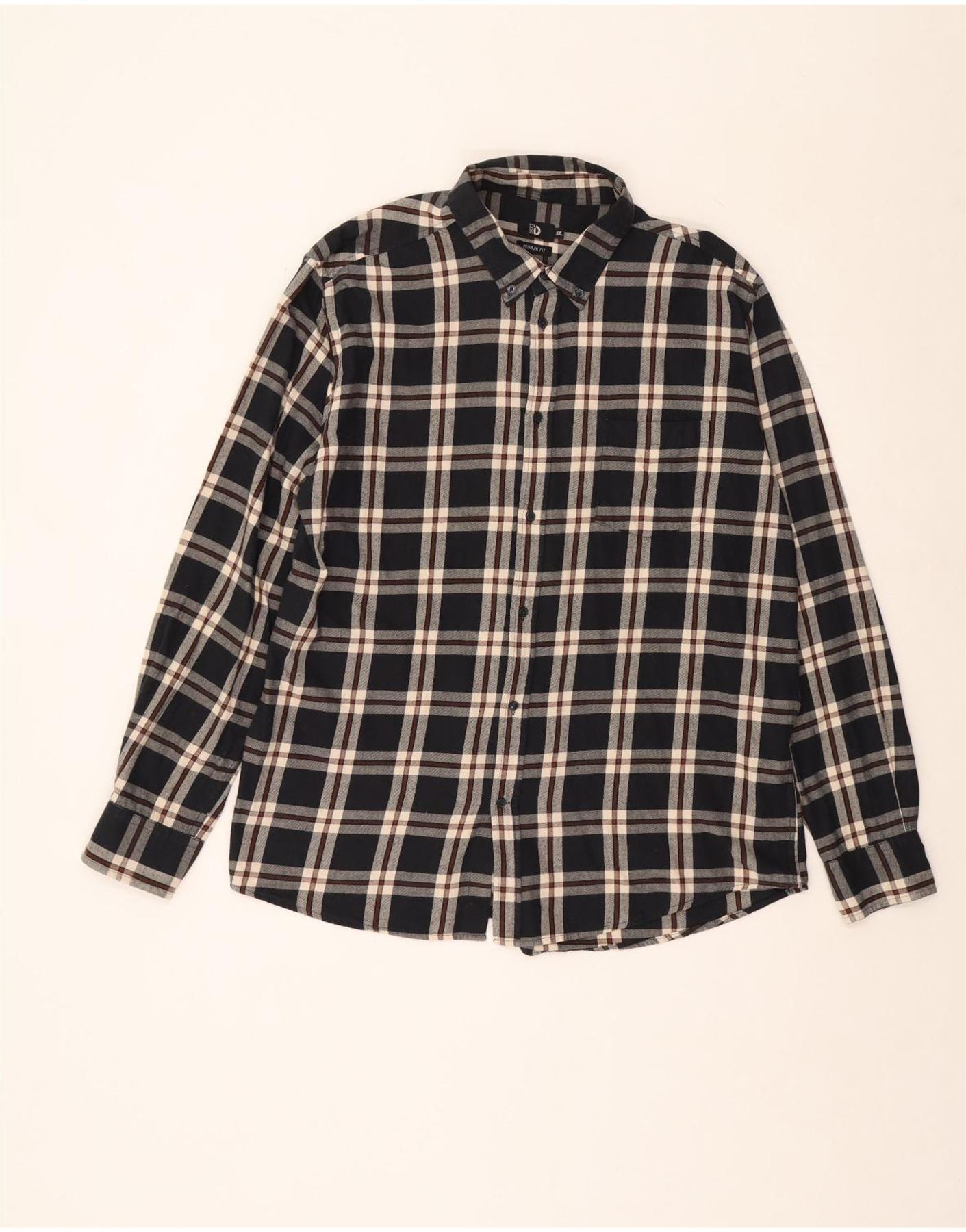 Camisa masculina de flanela de ajuste regular DAKS 2XL algodão xadrez azul marinho