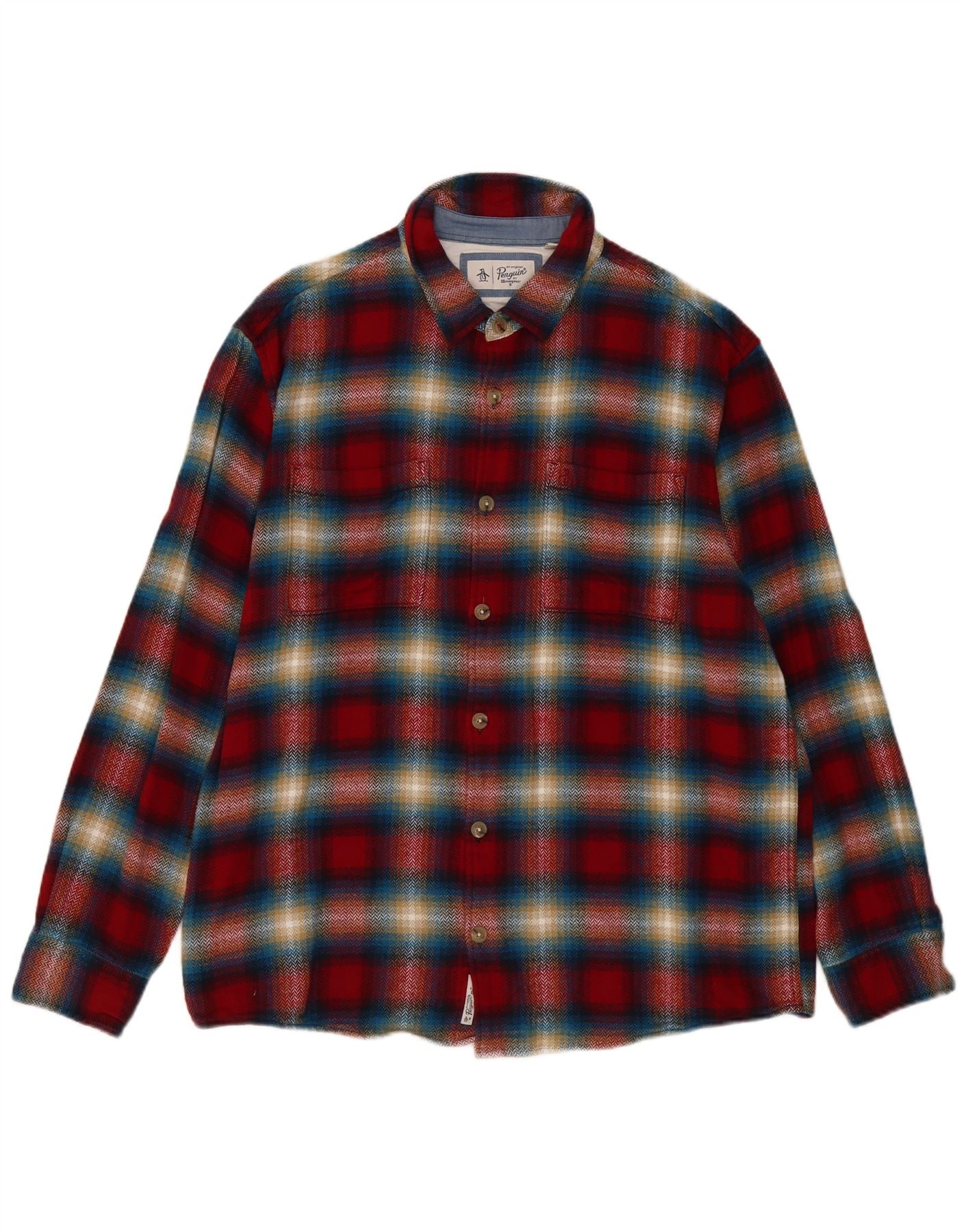 Camisa masculina de flanela de lenhador PENGUIN XL de algodão xadrez vermelho