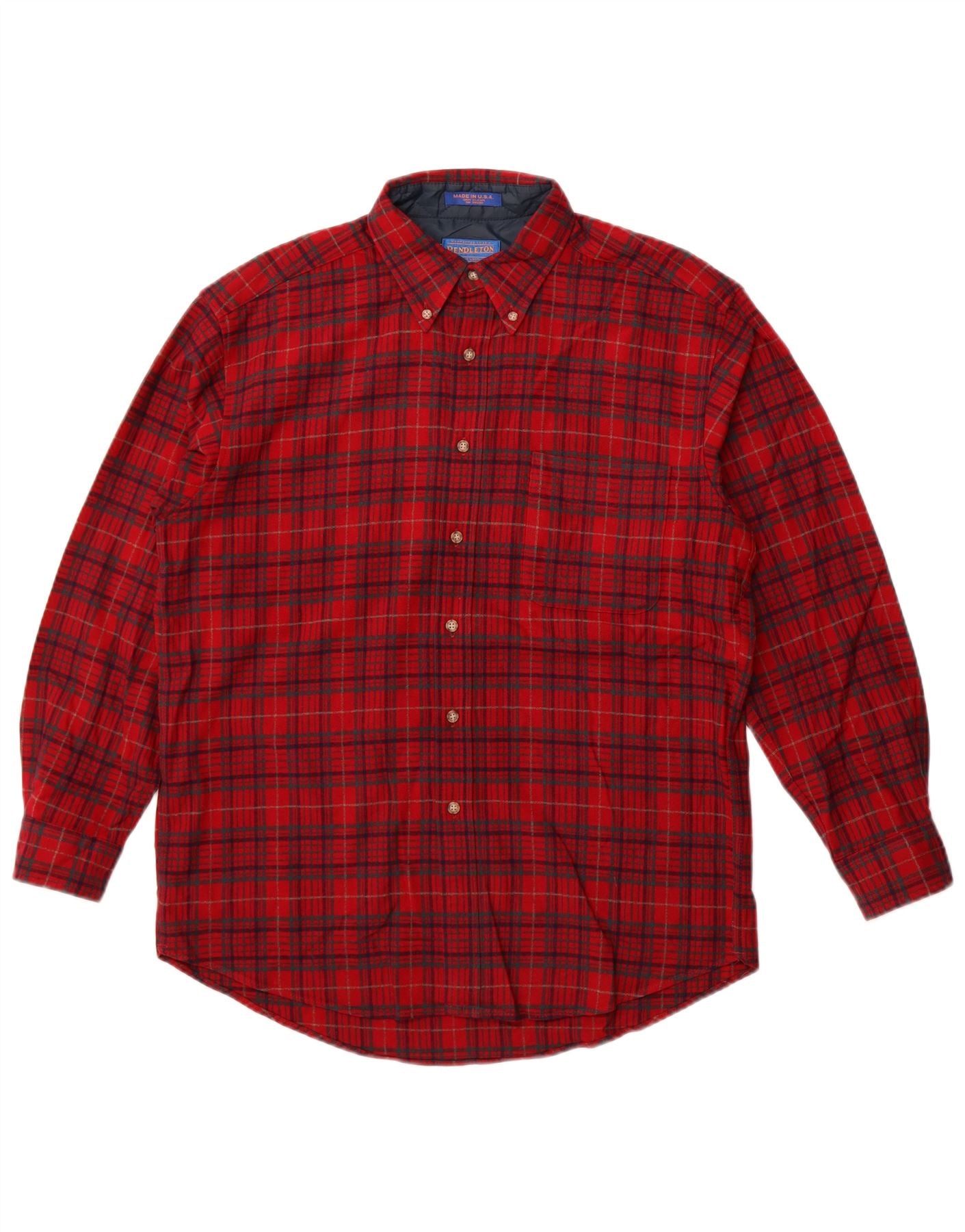 Camisa masculina de flanela Lenhador PENDLETON de lã virgem xadrez vermelha média