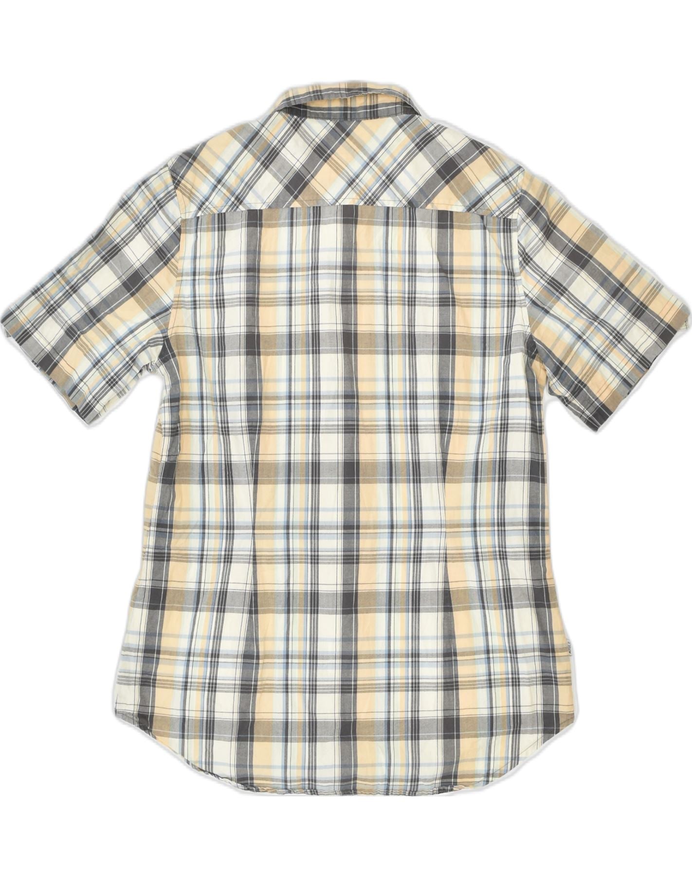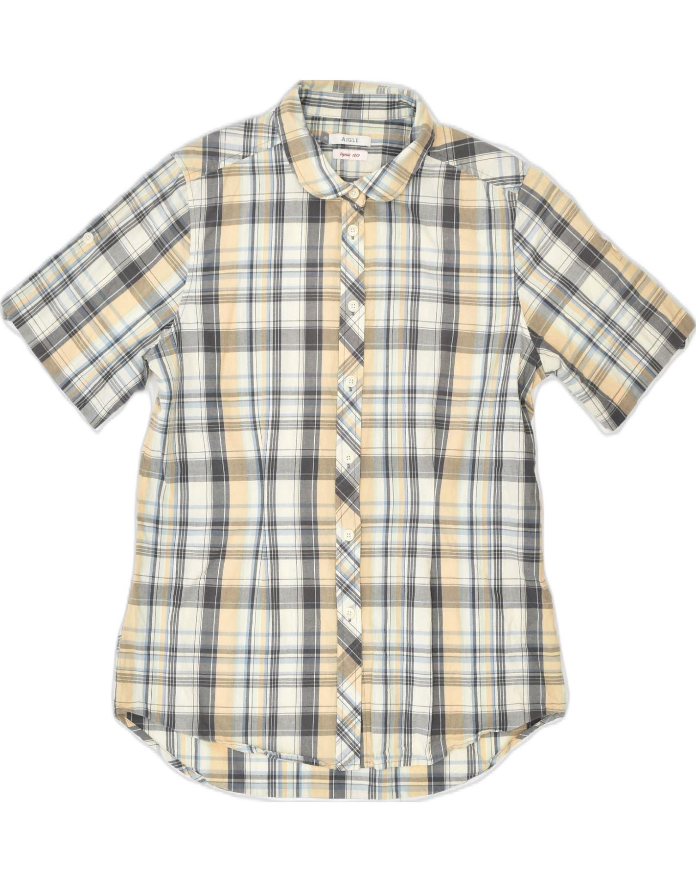 Camisa masculina de manga curta AIGLE tamanho 40 algodão xadrez bege médio