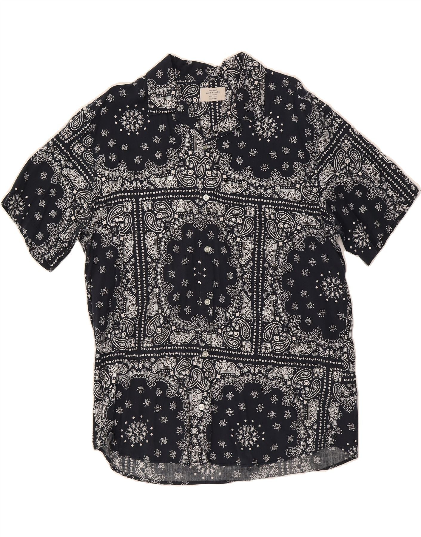 Camisa masculina de manga curta BETTY JACKSON grande algodão floral azul marinho