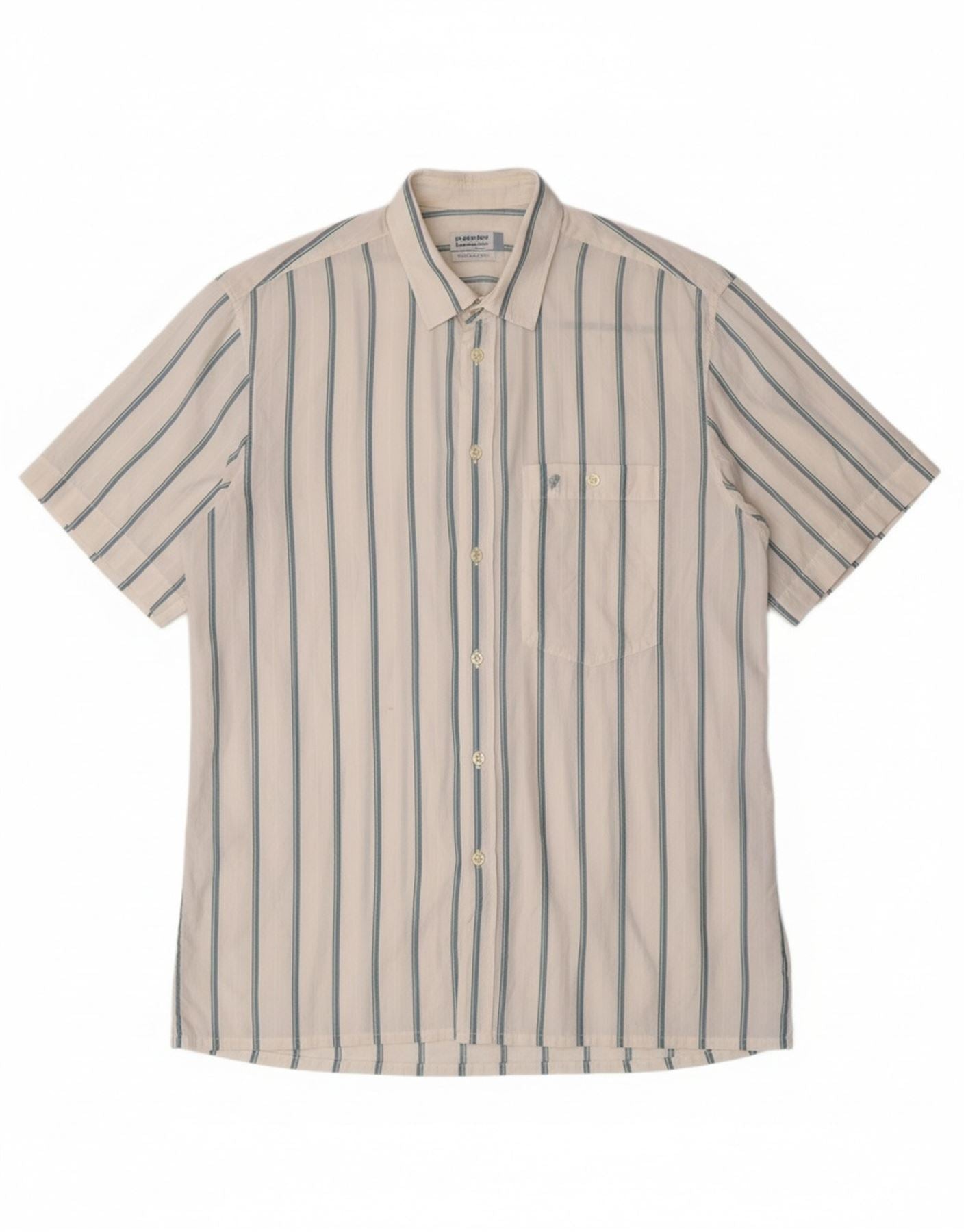 Camisa masculina de manga curta CACHAREL tamanho 16 41 grande listrada branca