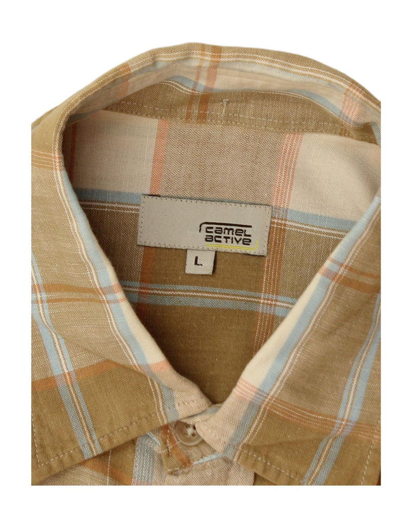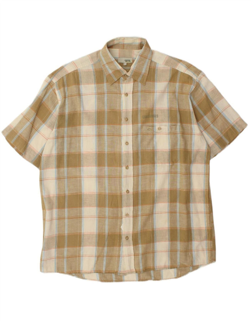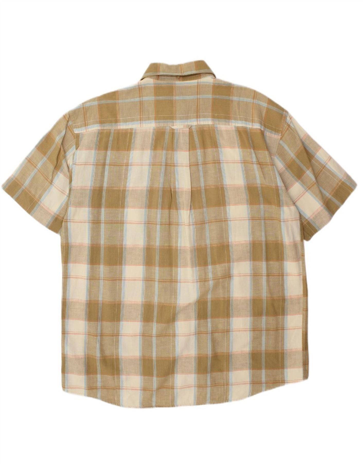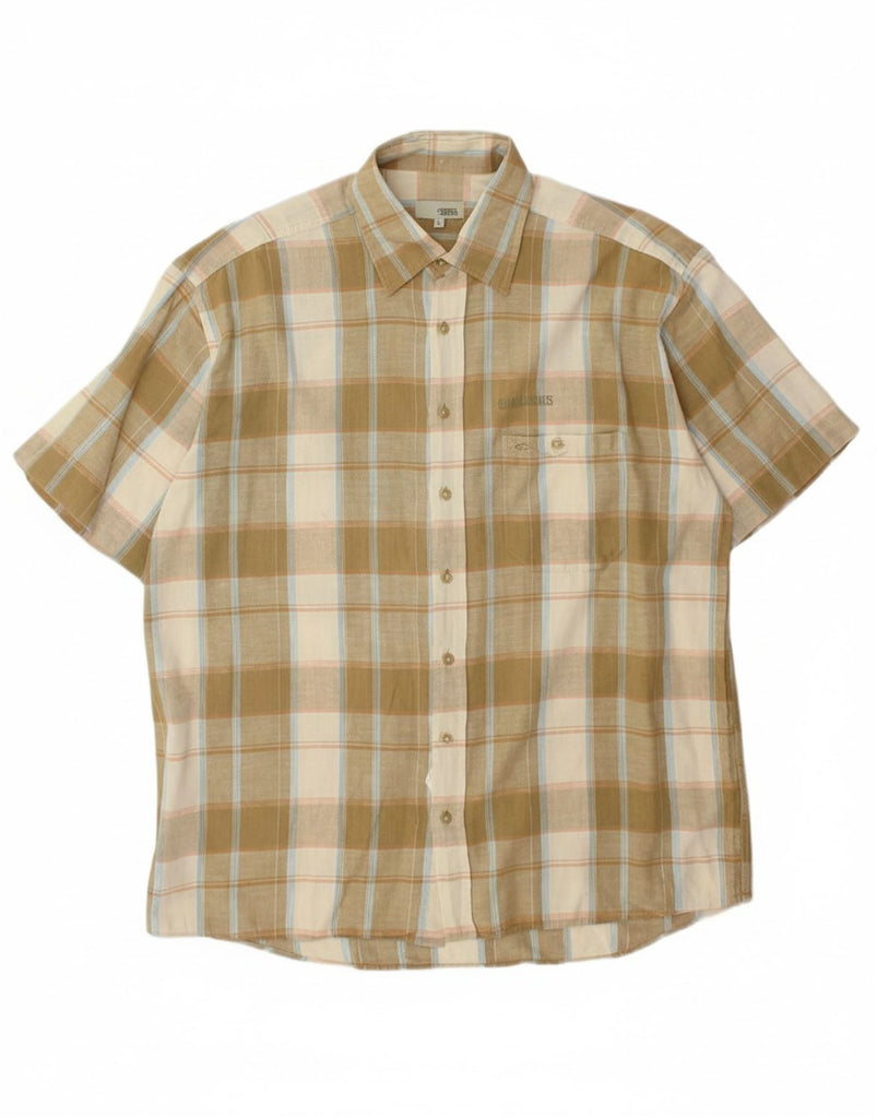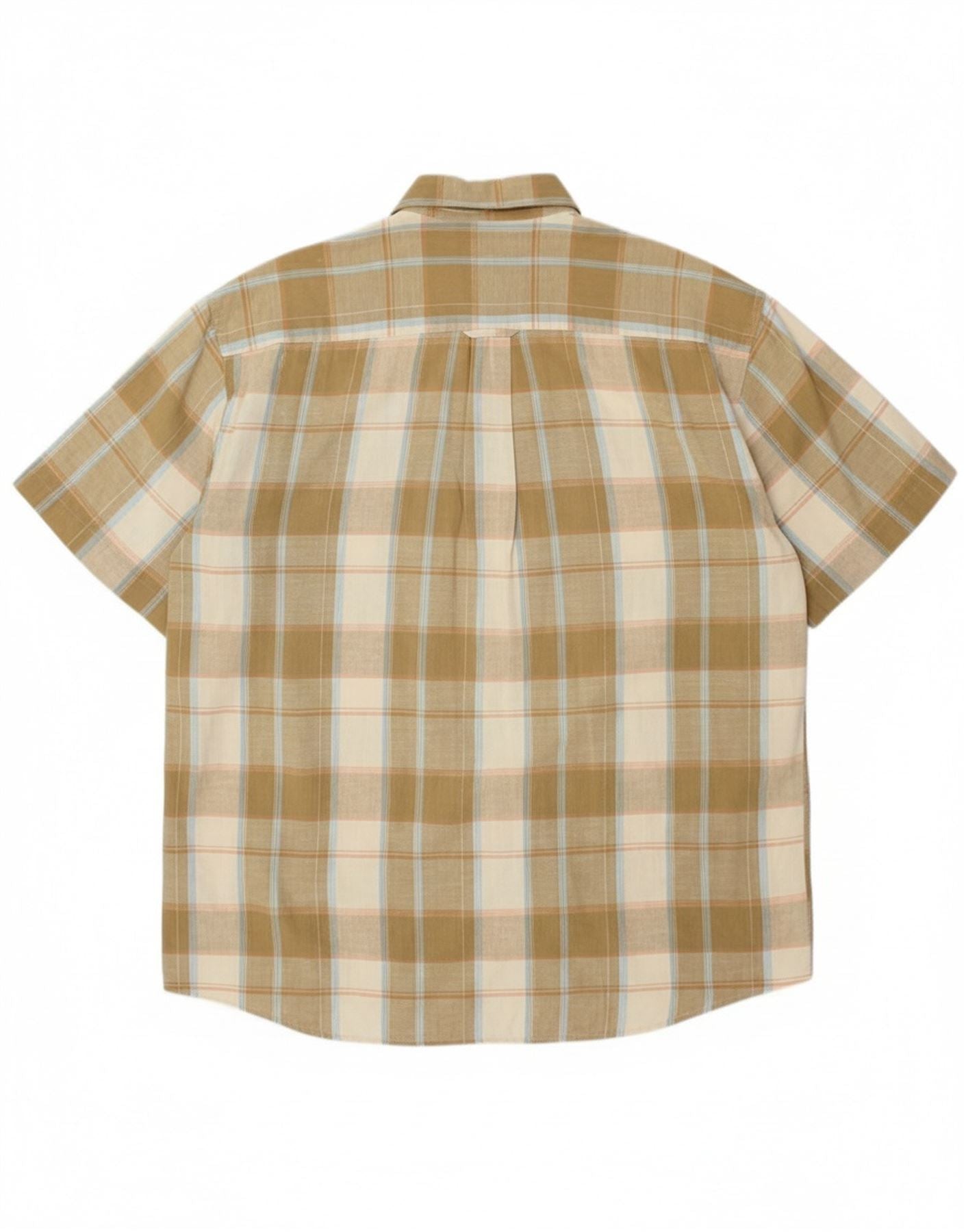 Camisa masculina de manga curta CAMEL grande algodão xadrez bege