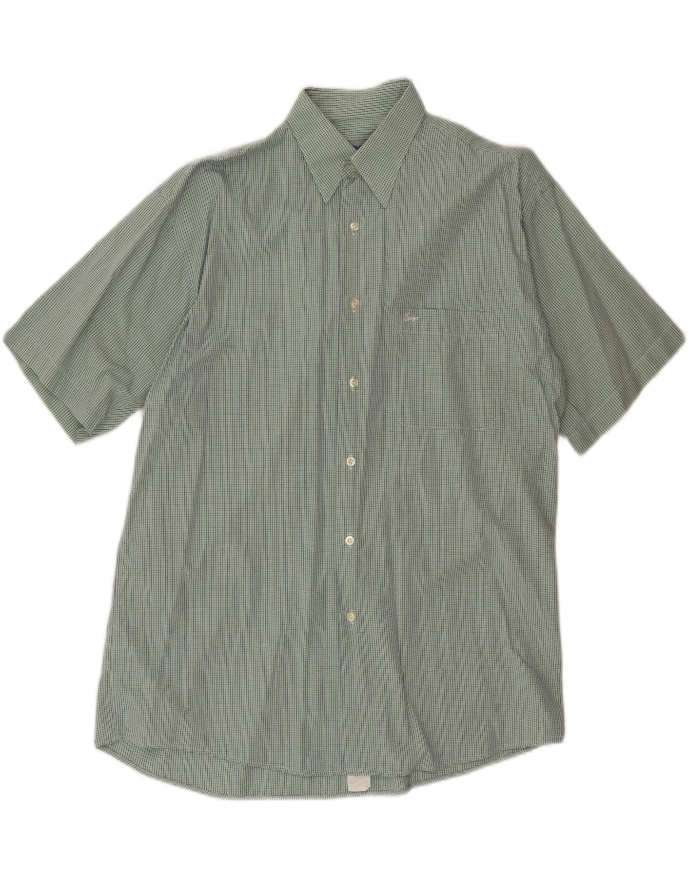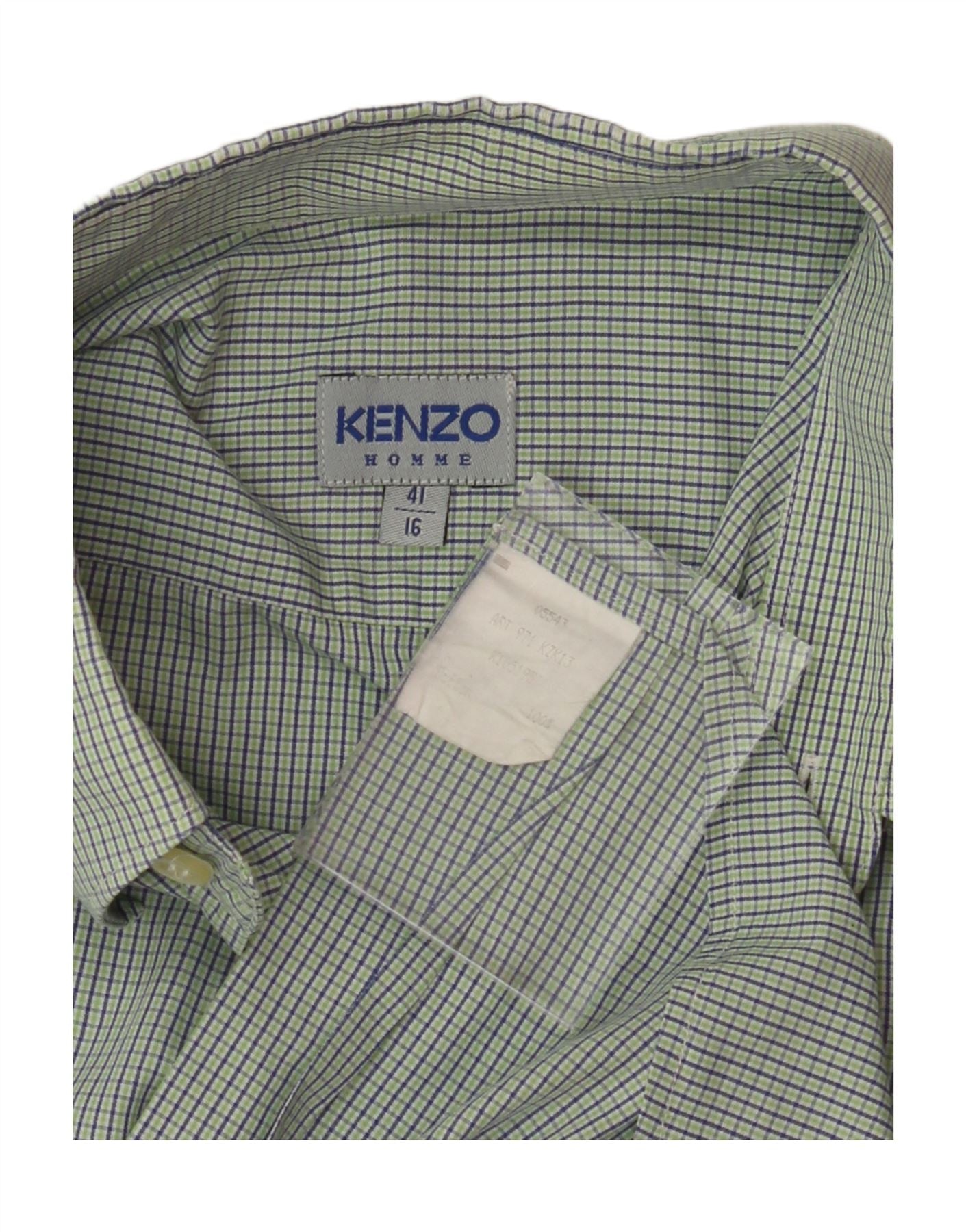 Camisa masculina de manga curta KENZO tamanho 41/16 grande algodão xadrez verde